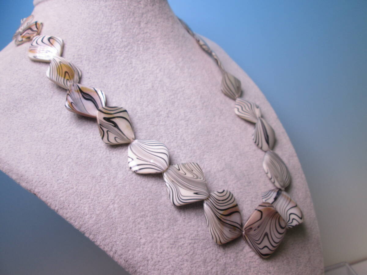 ☆シェル細工ブラックラインデザインネックレス パーティーアクセサリー