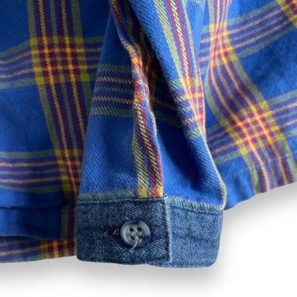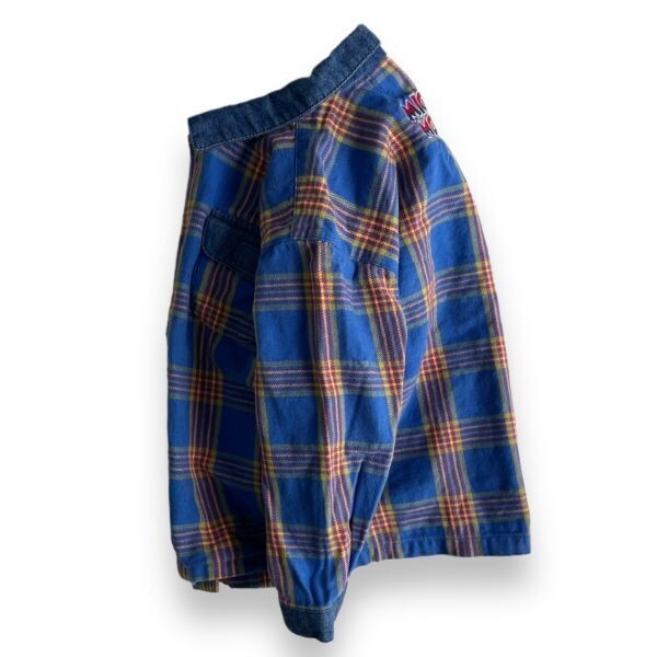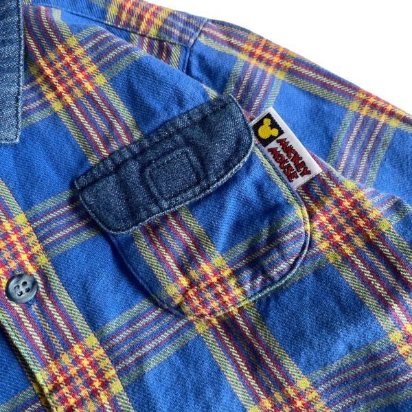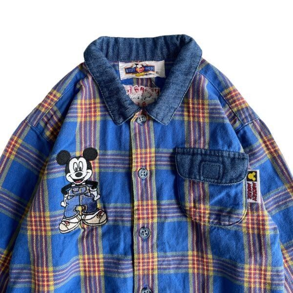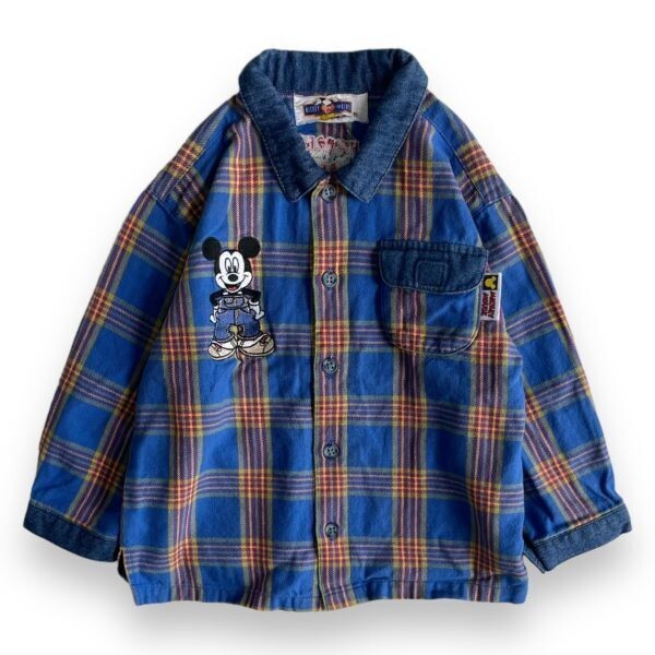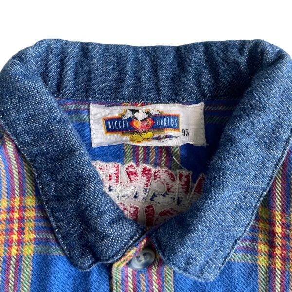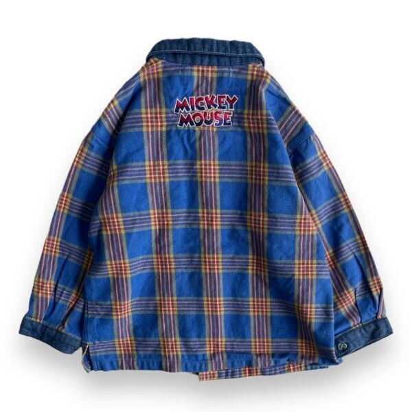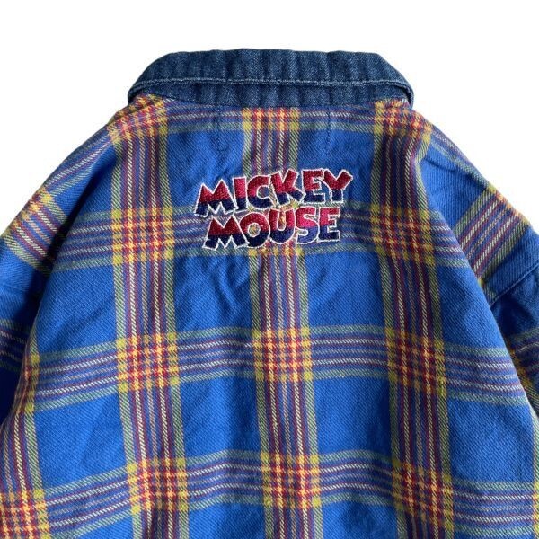 国内正規品 MICKEY FOR KIDS ミッキーマウス ロゴ 刺繍 長袖 チェック デニム 襟フランネルシャツ L/S キッズ KIDS BABY ベビー 子供用 95