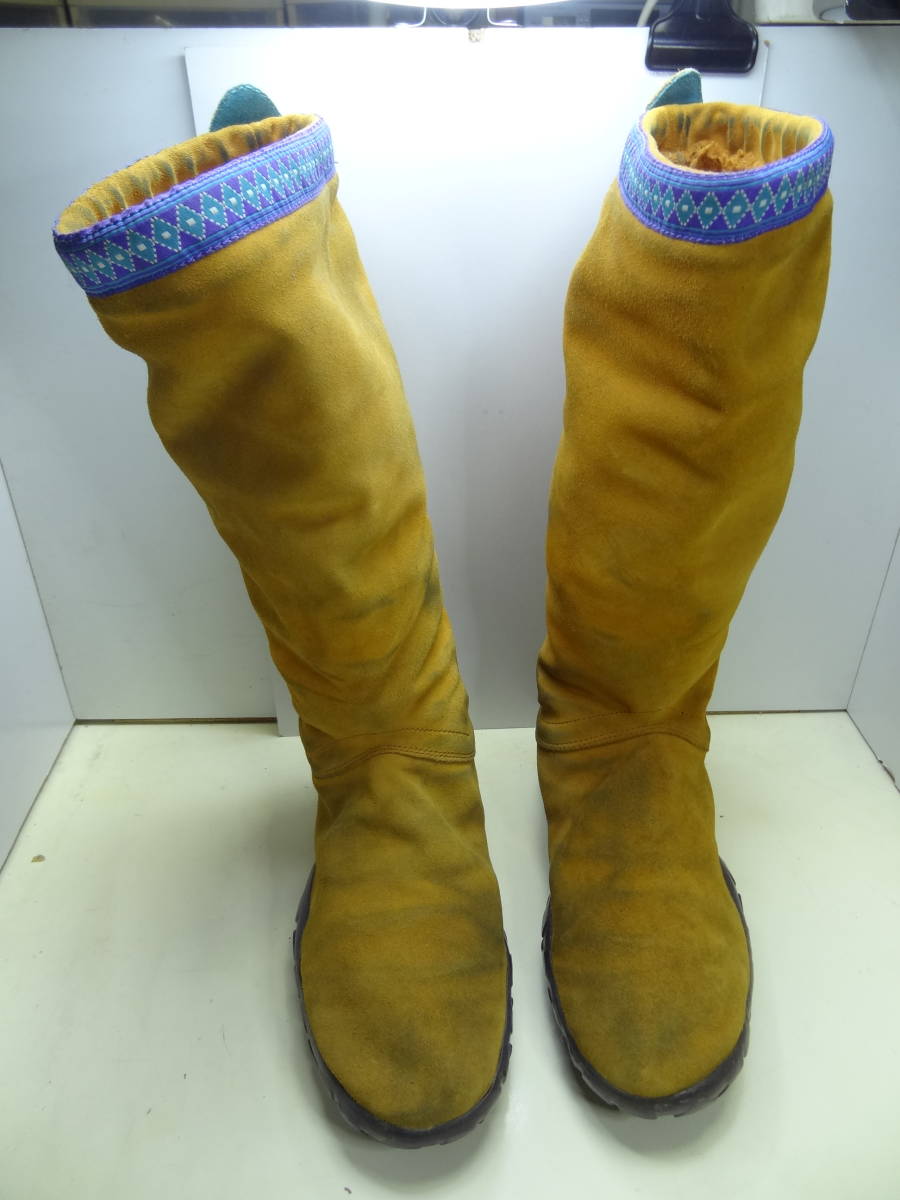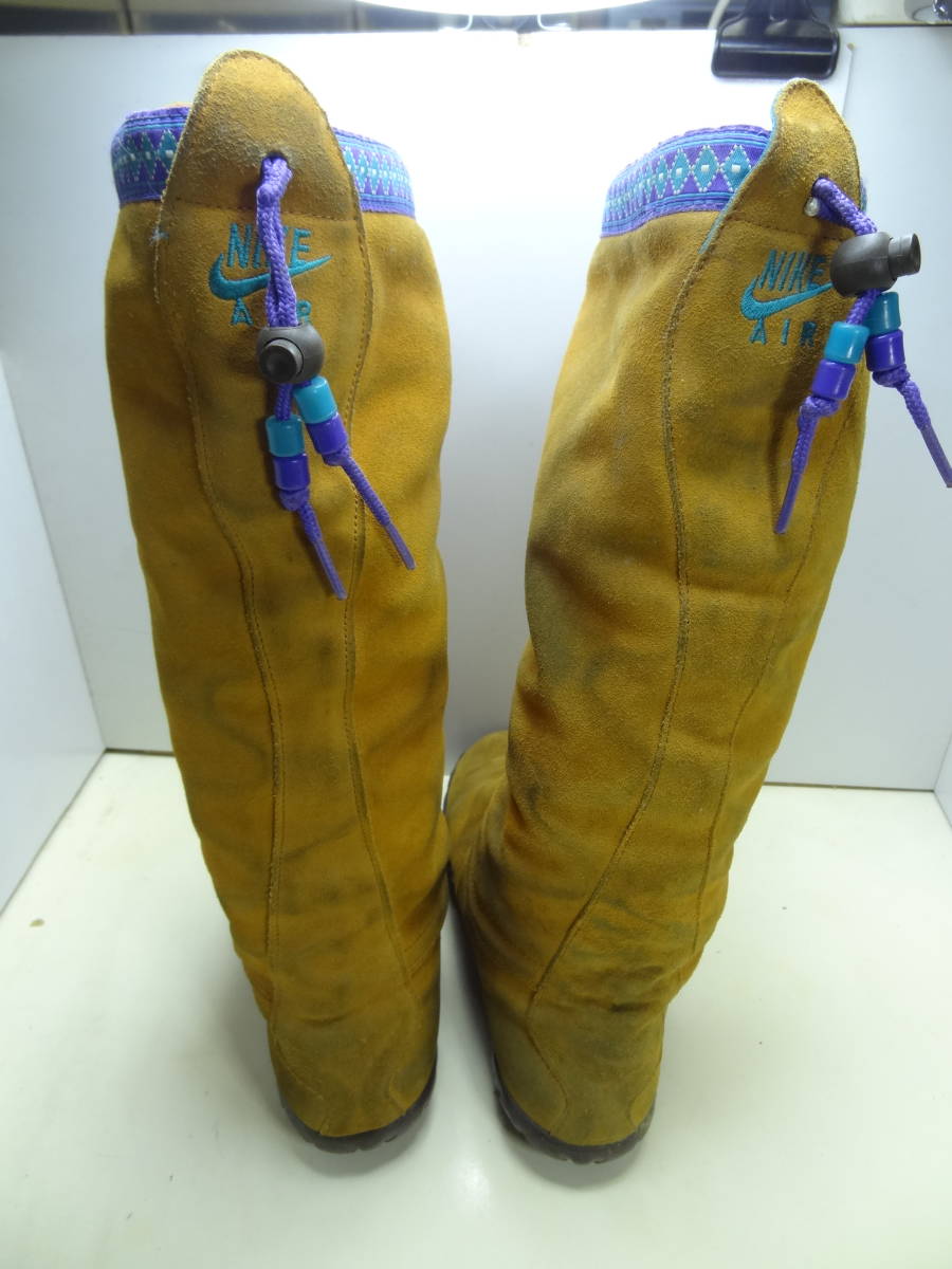 送料無料 レア !!ナイキ NIKE AIR モック ブーツ レディース チロリアンテープ付き裏ボア付き金茶色スウェード素材ブーツスニーカー 25cm
