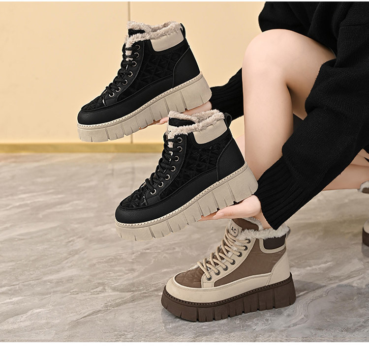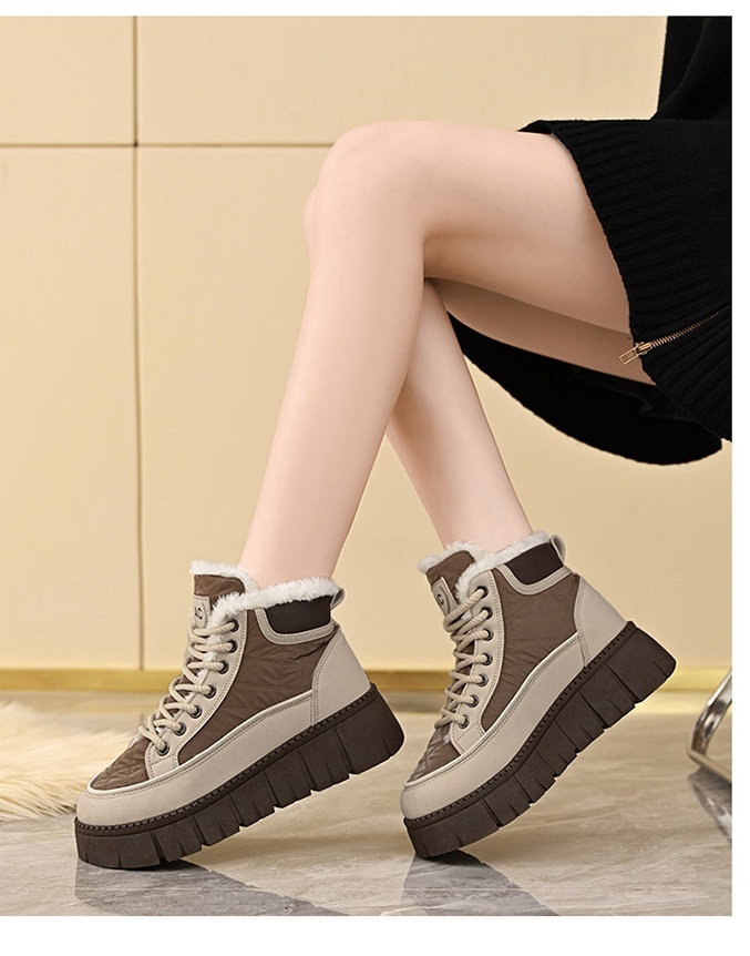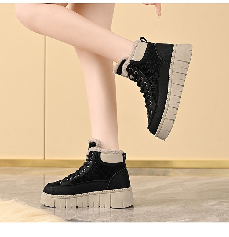 冬のギャザースノーブーツ女性厚底保温綿靴カジュアルハイカットブーツ女性 Y022