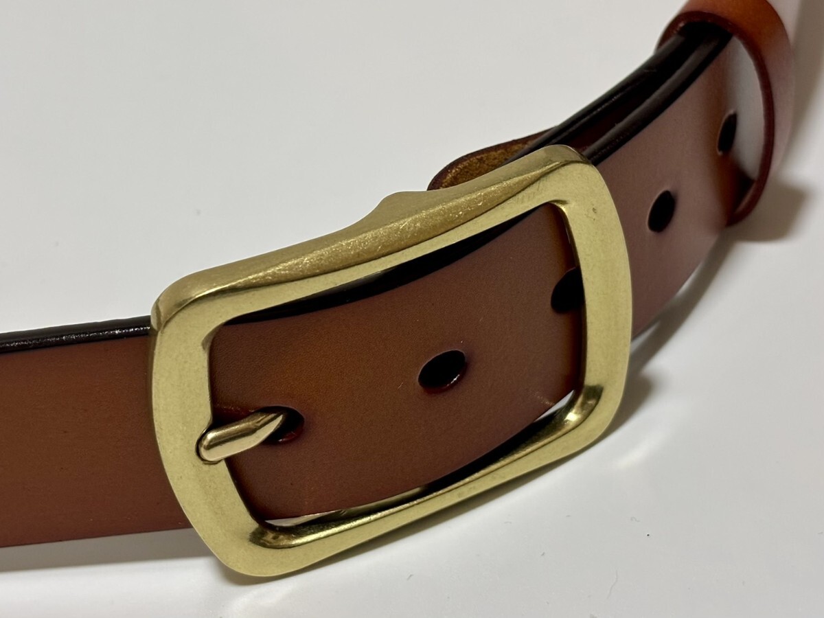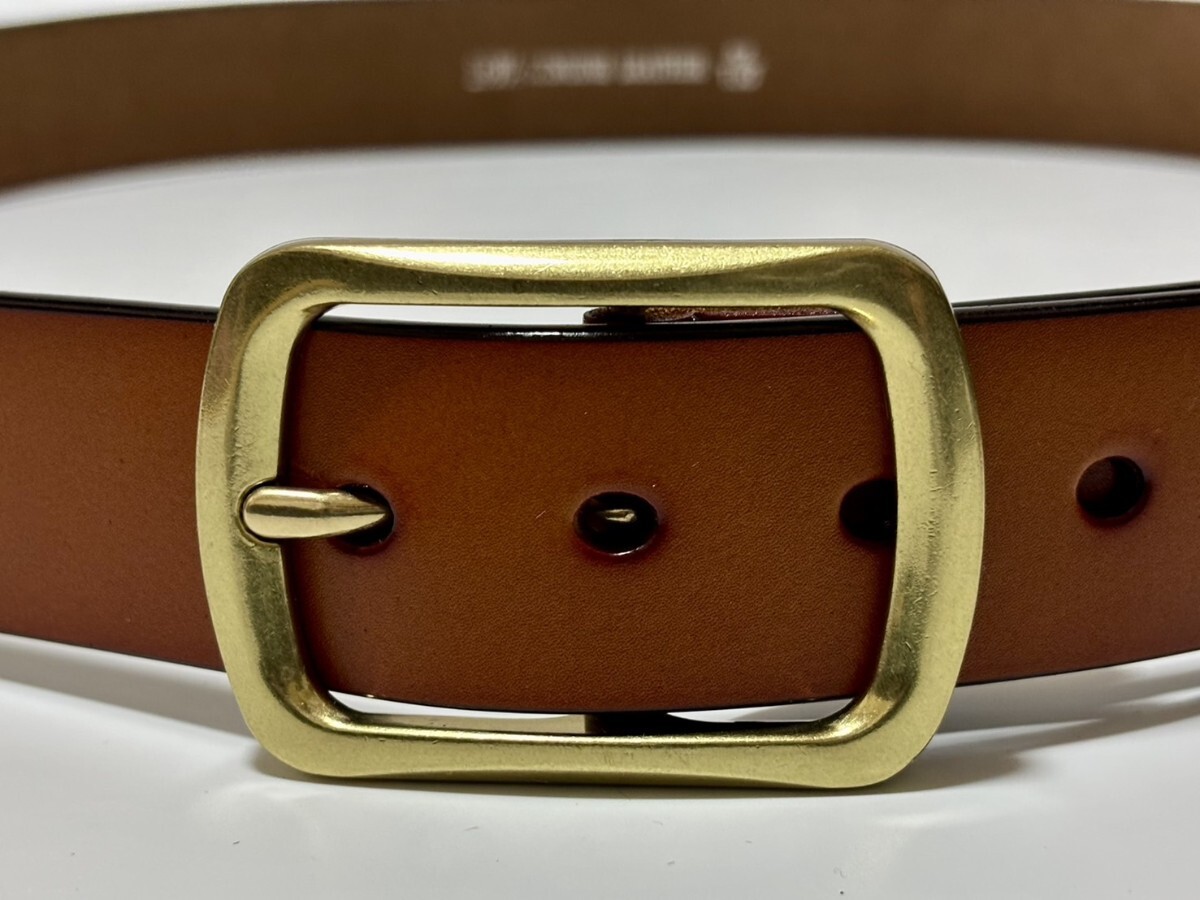 ゴールドのバックルに明るめのブラウンレザーを採用しているので、華やかでかわいい印象を受けます。