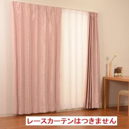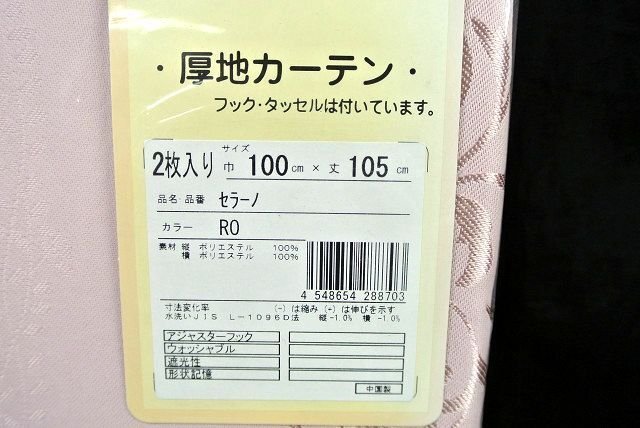 即決 未使用 厚地カーテン 100×105㎝ 2枚入 セラーノ RO ローズ 遮光性 形状記憶 洗える フック タッセル付