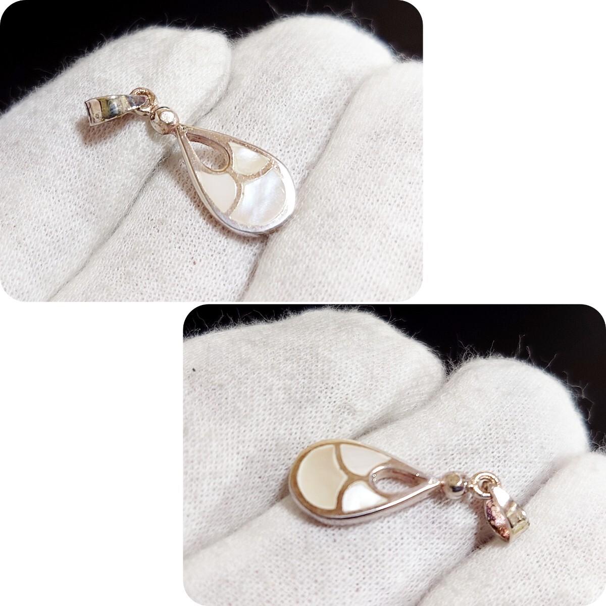 光の加減でホワイトシェルの艶々した輝きがキラキラして綺麗です☆