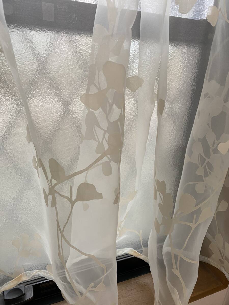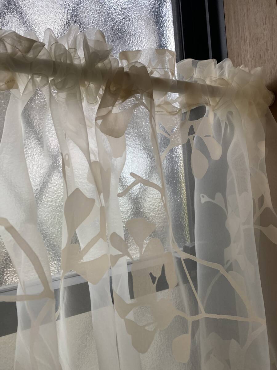 カフェカーテンW1m74cmxH78cm ,オーガンジーにボタニカルオパールプリント②、ハンドメイド