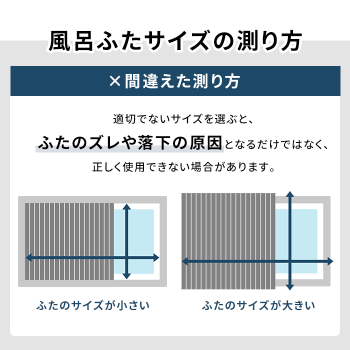 | Ag抗菌シャッター式 風呂ふた。 〔POINT〕Ag抗菌加工&防カビ加工 繋ぎ目にAg+銀イオン抗菌加工が施してあり、菌やカビによる嫌なヌメリの繁殖を抑えて風呂ふたをきれいに保ちます。 〔POINT〕毎日のお風呂掃除が簡単に 表面の溝に沿って軽く洗って水を流せばお掃除完了。 (風呂ふたを洗う際は柔らかいスポンジや中性浴室用洗剤を使用してください。) 〔POINT〕くるくる巻いてすっきり収納 浴室にひろげている風呂ふたをくるくる巻くだけのシャッタータイプ。 クルッとまとめられるので収納スペースが少ないお風呂場にぴったり。 〔POINT〕軽量設計 毎日使うものだから軽量でストレスフリーな使い心地。 軽量なのでお子様からお年寄りの方でも簡単に扱えます。 〔POINT〕安心・安全の日本製。 【使用上のご注意】 ◎購入直後は折りたたみクセが残っていることがありますが、徐々に解消していきます。 ◎24時間風呂ではご使用をお避け下さい。 ◎風呂水洗浄剤(塩素殺菌剤)をご使用しないでください。 ◎柑橘類(柚子・みかん・レモンなど)を使用しますと風呂ふたを傷める恐れがあります。 ◎ベビーバスなどを風呂ふたに乗せて使用しないでください。 |