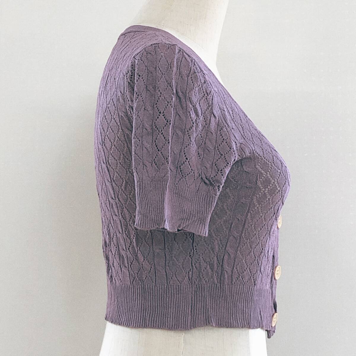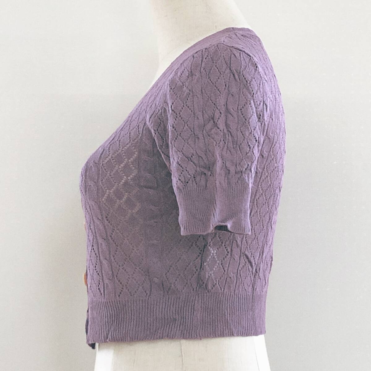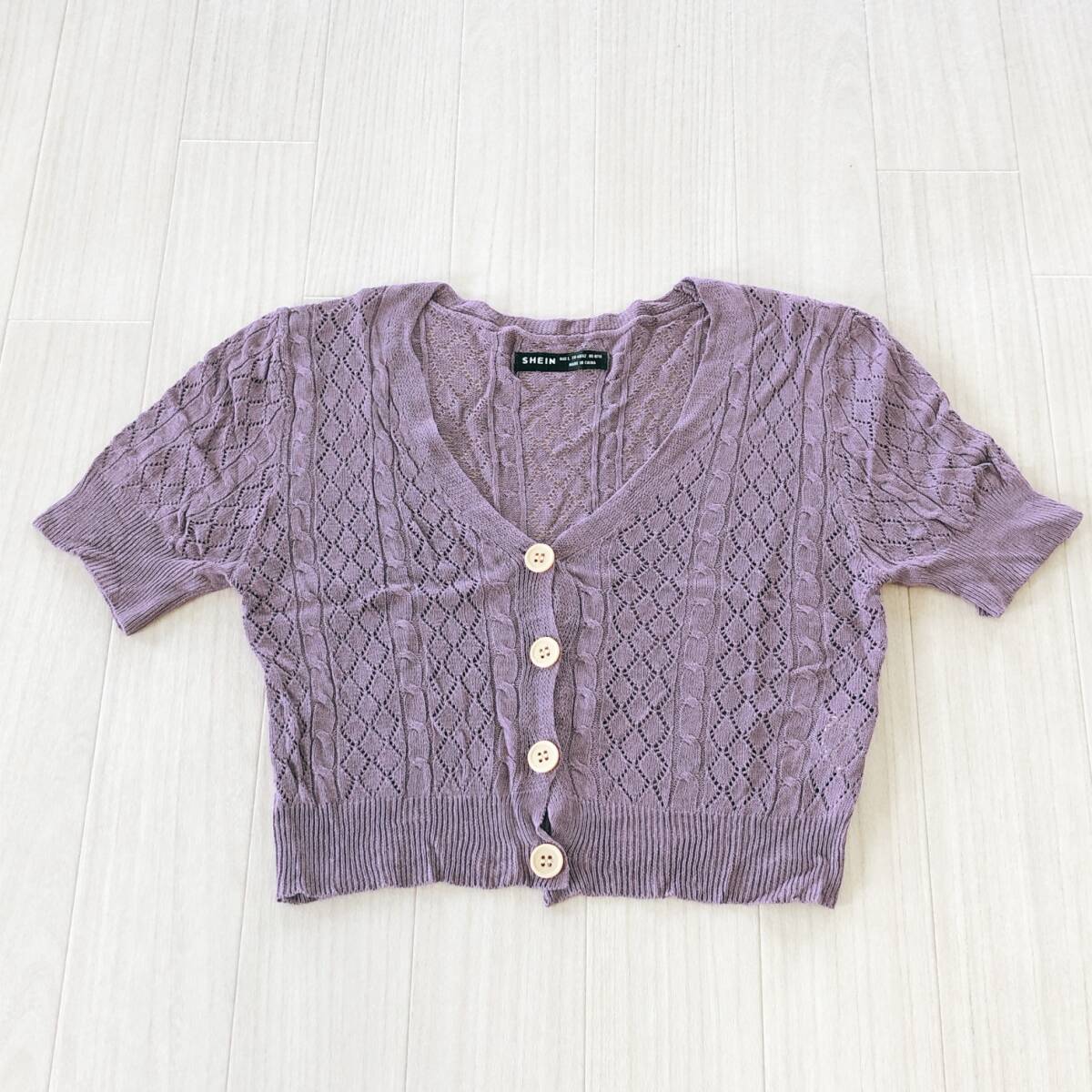 Y1435 美品 SHEIN レディース トップス 半袖 薄手 伸縮性 4つ穴ボタン 透け感 L パープル 紫 シンプル フェミニン おしゃれ 涼しげ 夏