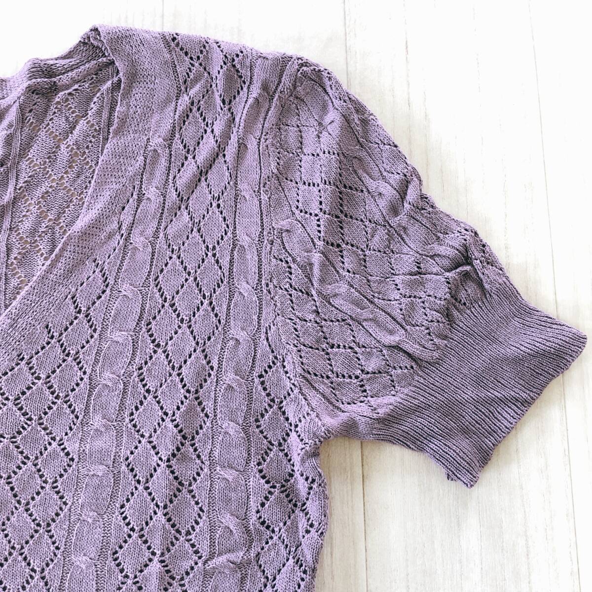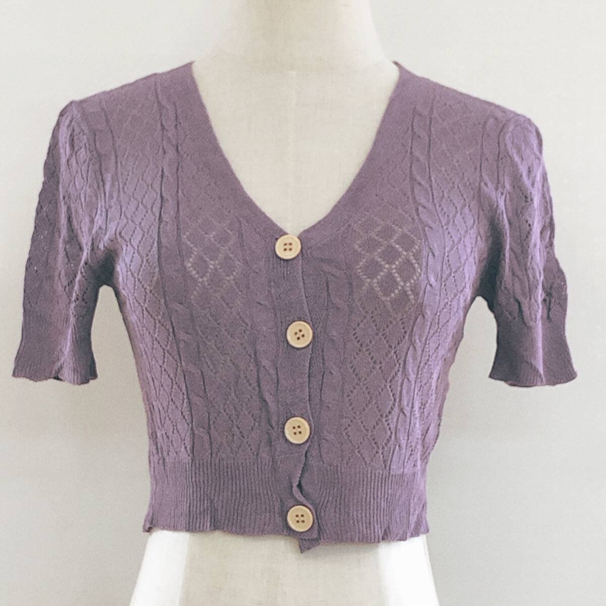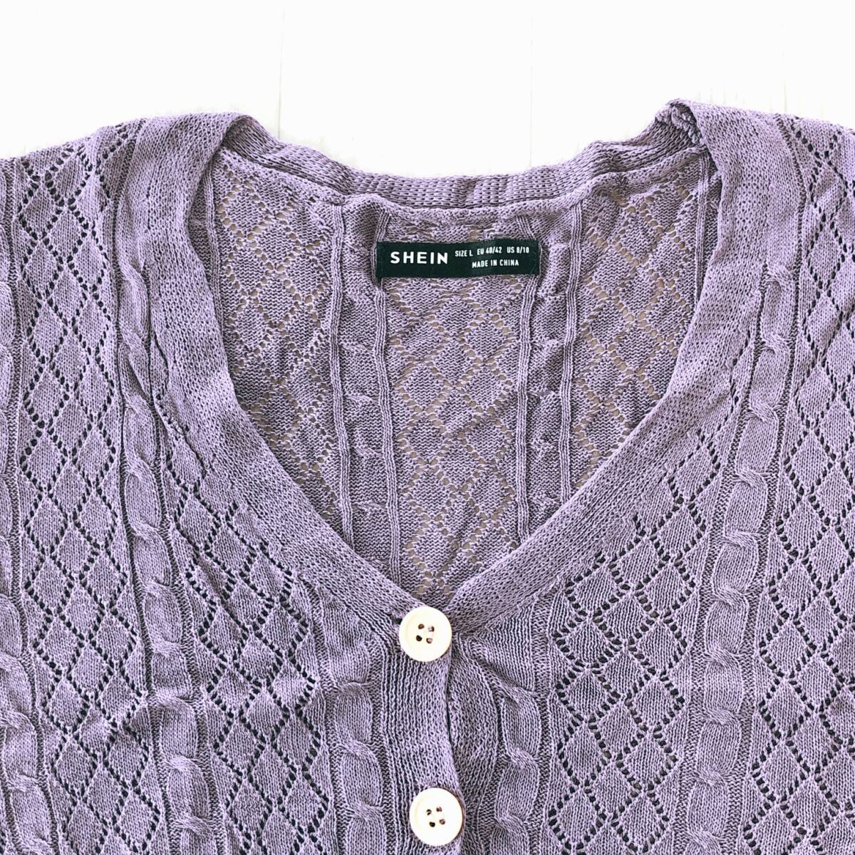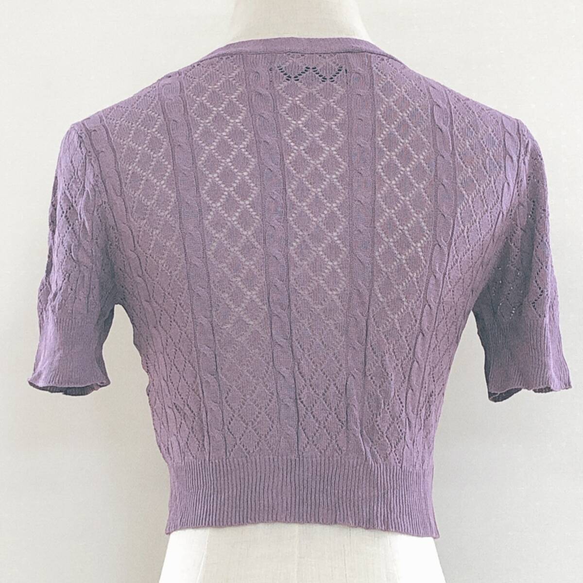 Y1435 美品 SHEIN レディース トップス 半袖 薄手 伸縮性 4つ穴ボタン 透け感 L パープル 紫 シンプル フェミニン おしゃれ 涼しげ 夏