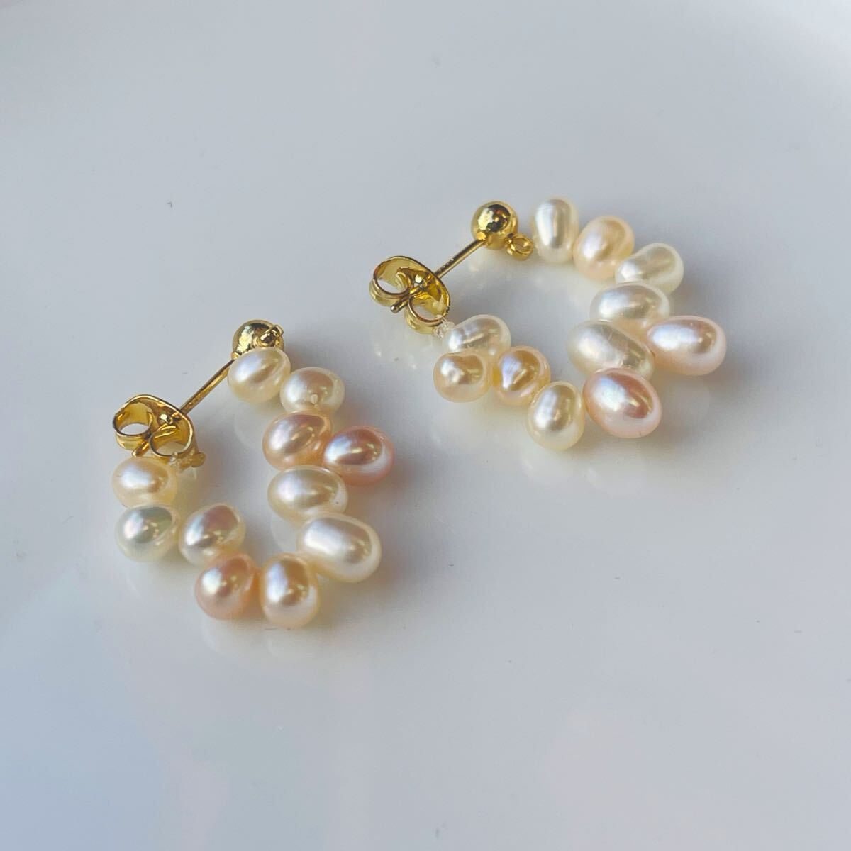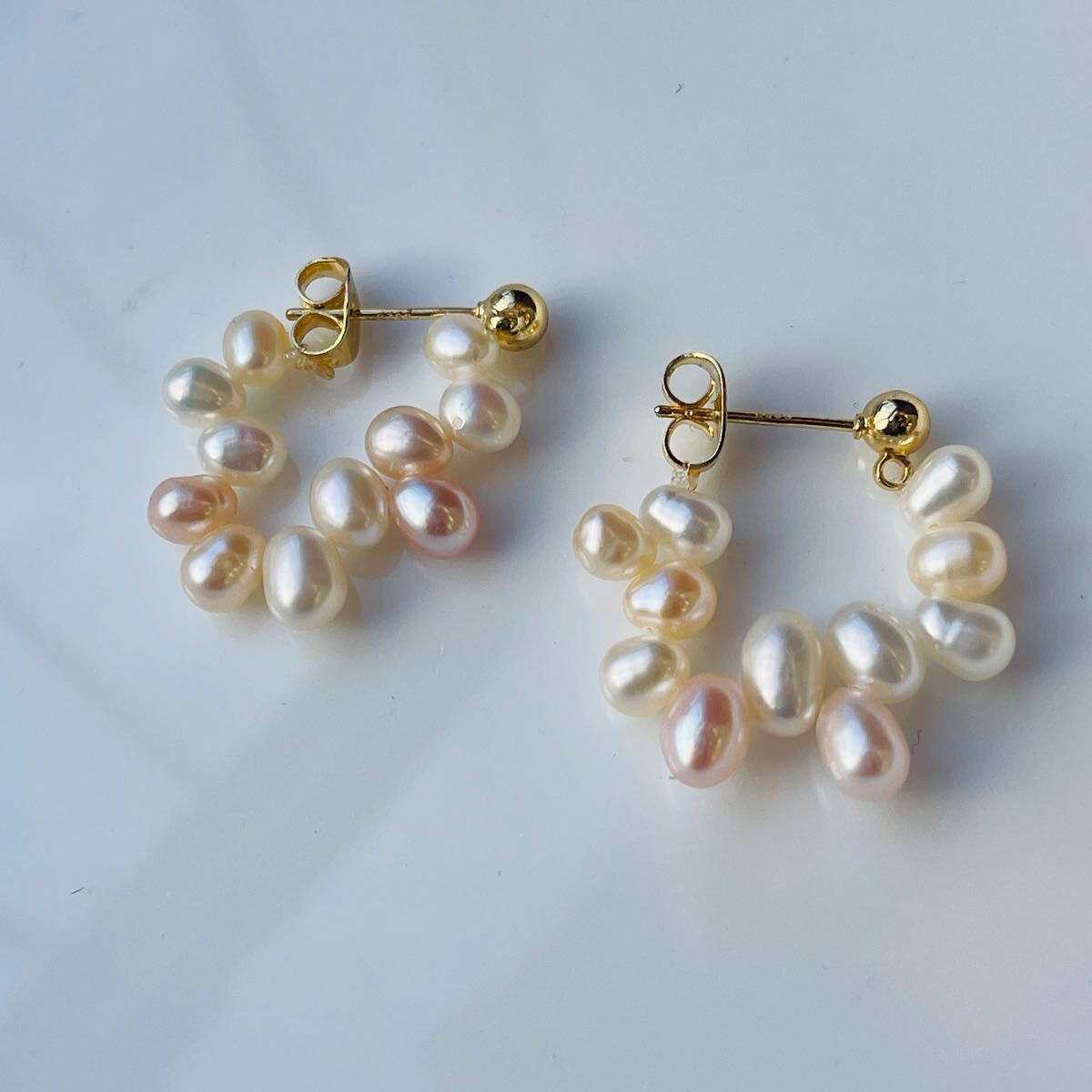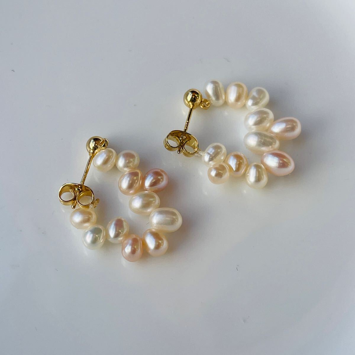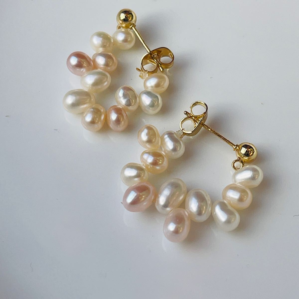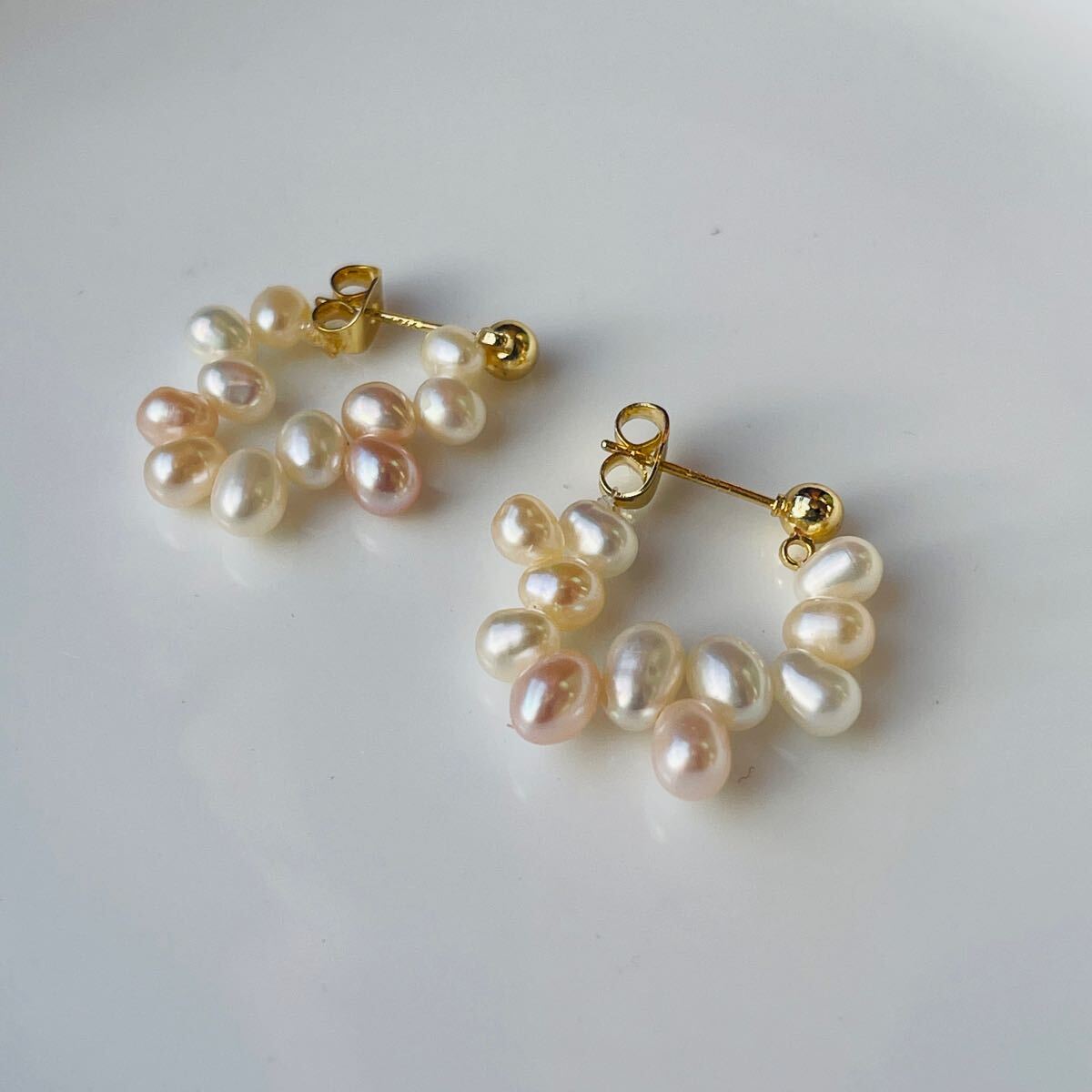 天然芥子真珠と金属を使用した高品質なピアスです。