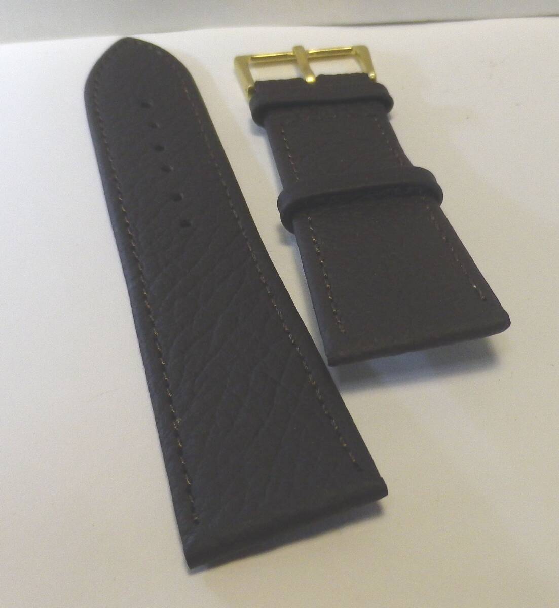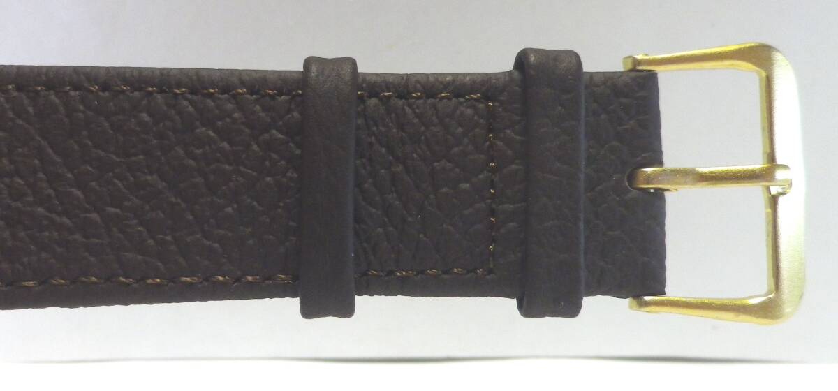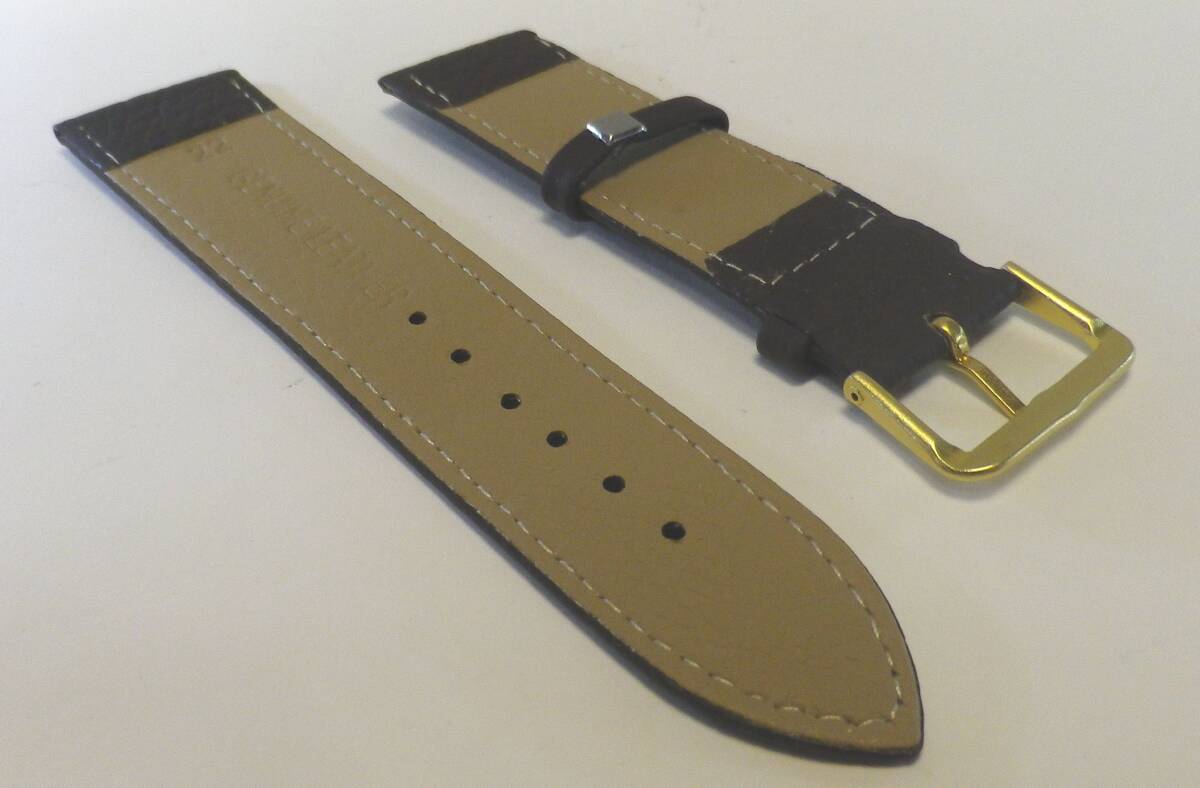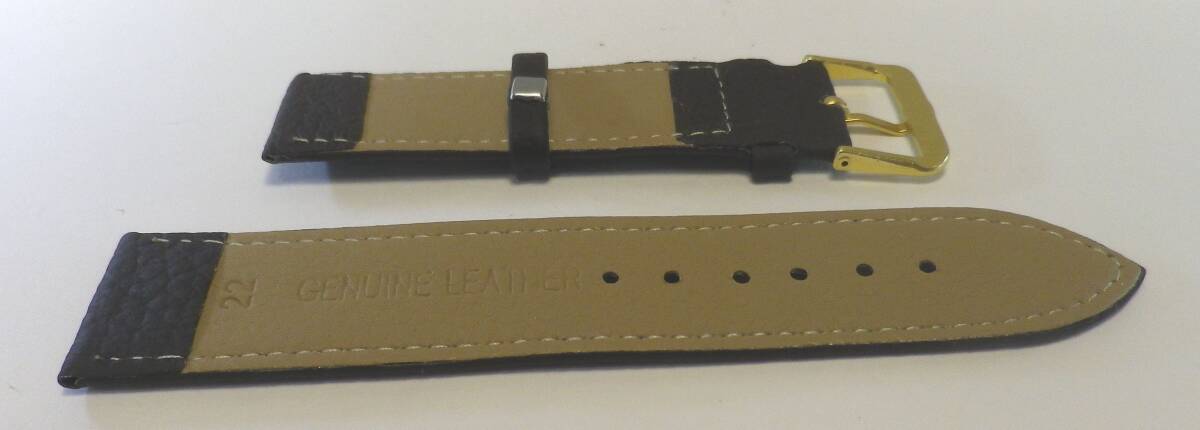 | 商品コメント | 本革替えベルトです。色はブラウン(茶色)です。しなやかな革のベルトです。レザーの刻印あり、尾錠はゴールドです。裏地は耐汗素材です。新品です。新品の22ミリのばね棒(1組2本)付きです。**裏には微細な接着剤の跡がある場合があります。 size の詳細 時計のラグ幅22(ミリ)~に付けられます、ベルトの長さは約19センチ(ベルトの金具部分を含まず)、ベルトの全長は約20センチ、ベルトの厚み:2.4mm(通常の部分) ばね棒の詳細 ステンレススチール製、両先端ばね式 ノークレーム、ノーリターンでお願いします。 |