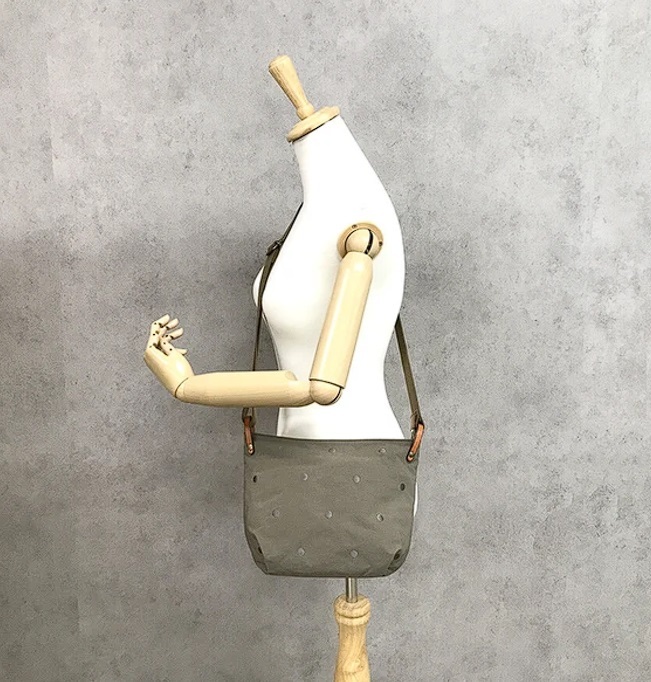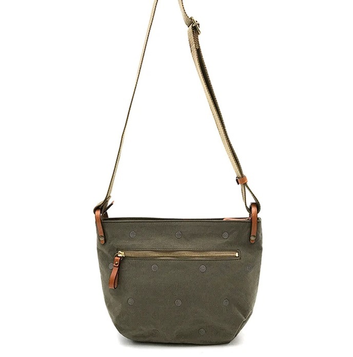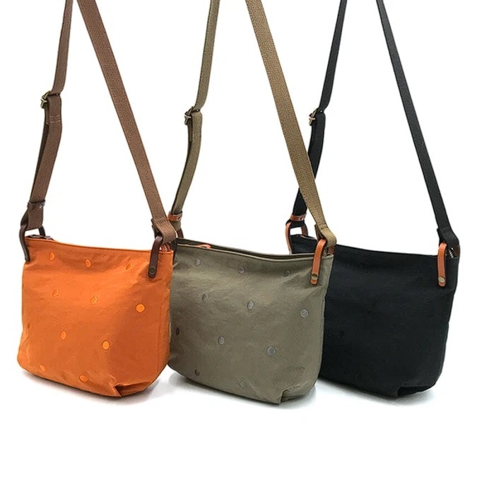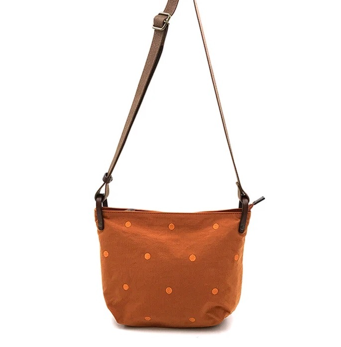日本製ドット刺繍ナイロン×牛革【リッセ】ショルダーバッグ ナチュラルな雰囲気 軽い 撥水 ナイロン オススメ オレンジ | |