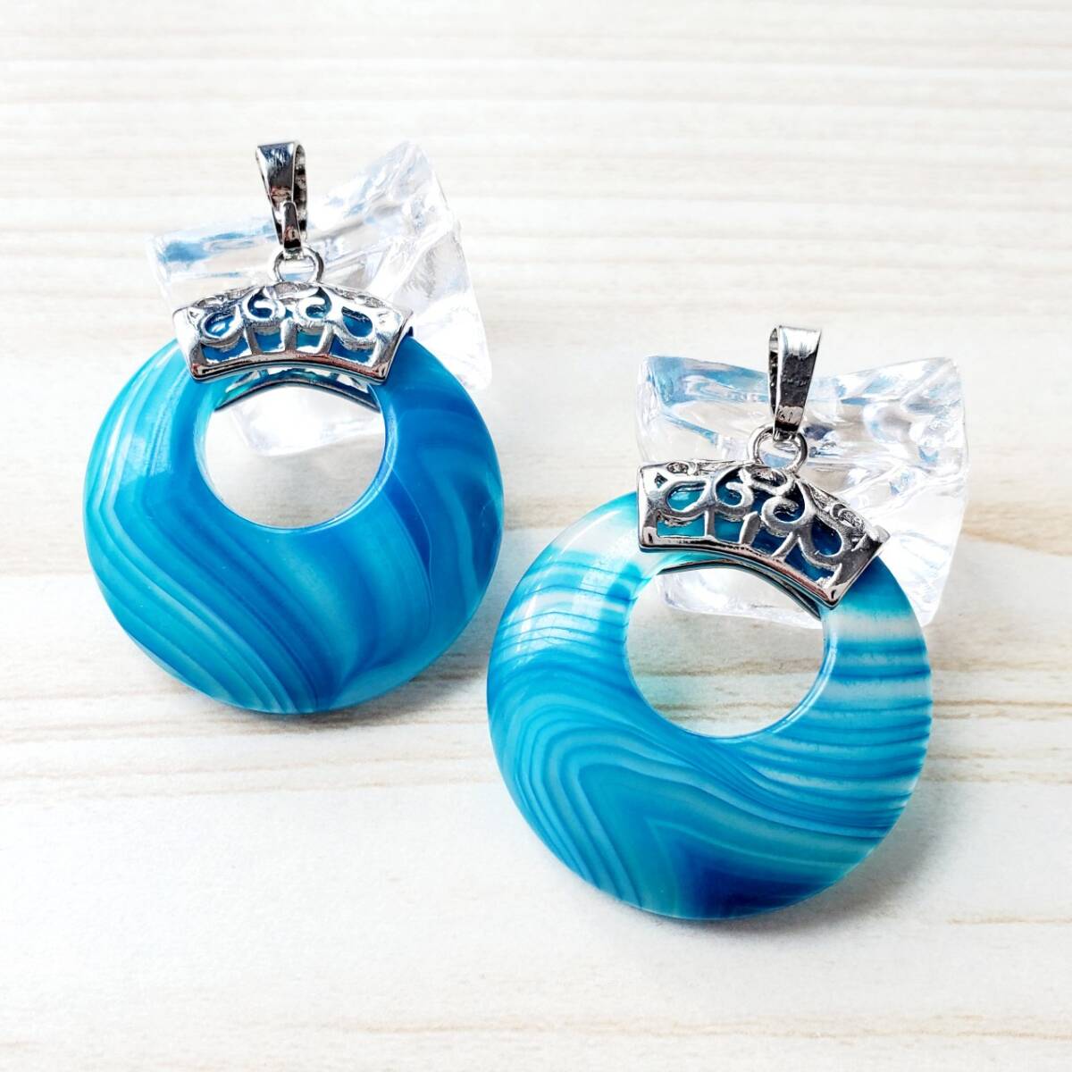 ◆商品名・・・【ブルーオニキス】ペンダントトップ2個セット *添付画像の物は実際にお送りするお品です。 *アゲート染め ◆サイズ・・・縦4.0㎝(金具込み) 横幅2.7㎝(最長部分) 約7.0g/1個 ◆素材・・・天然石 ステンレス *紐(チェーン)は付属しません。 ◆天然石の為、含有物・小さなキズや欠け・微妙な色味の違いや模様の違い等がある場合がございます。予めご了承くださいませ。 金具部分はステンレスなので、さびにくい素材になっています。 ★☆他にも天然石ペンダントトップ出品中☆★ |