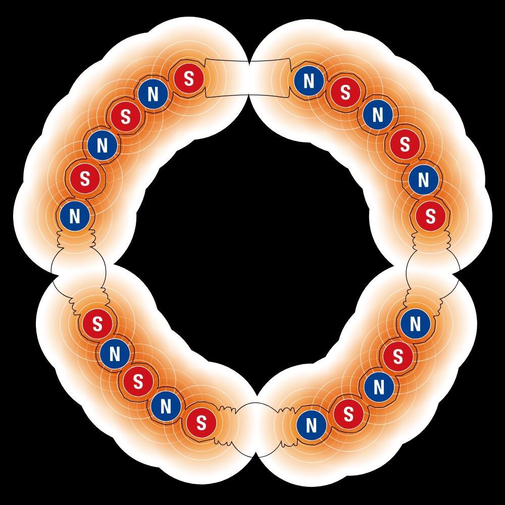 15.5cmサイズ22個、17.5cmサイズ26個、18.5cmサイズ28個 をN極S極交互配列
