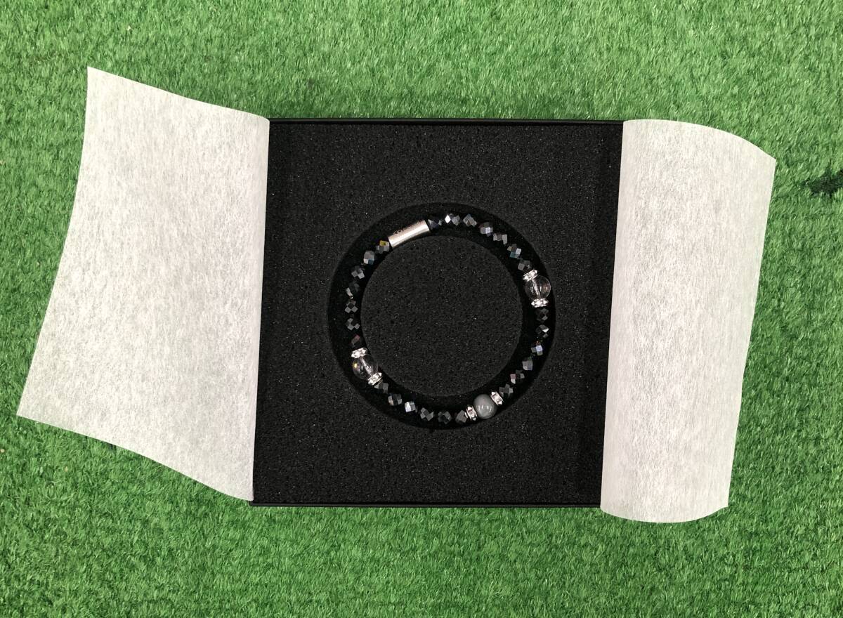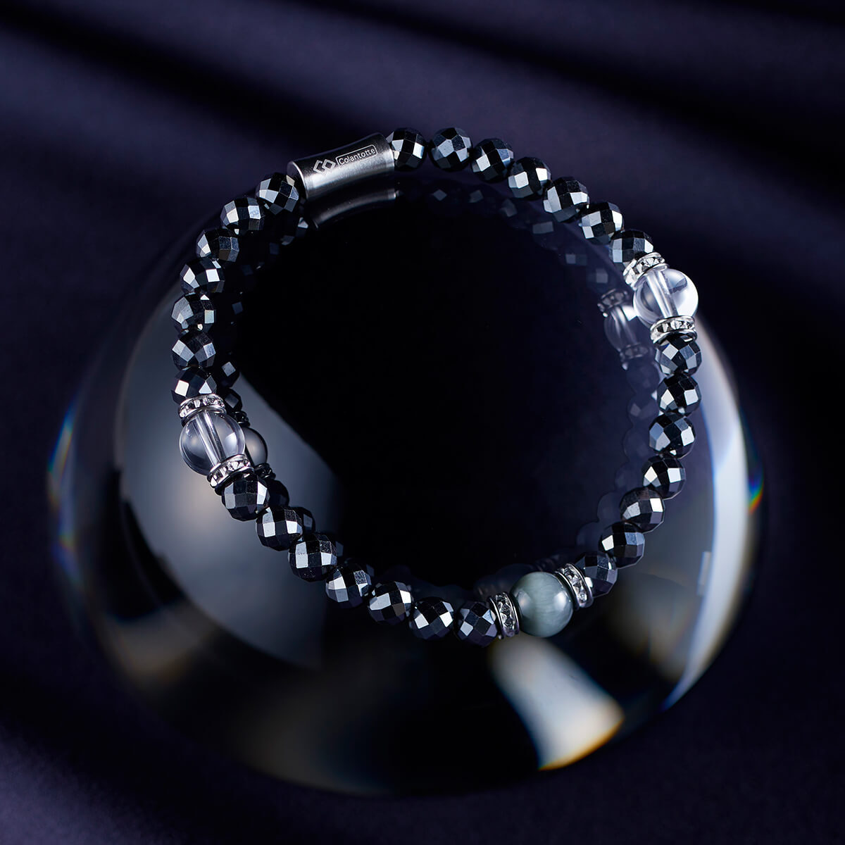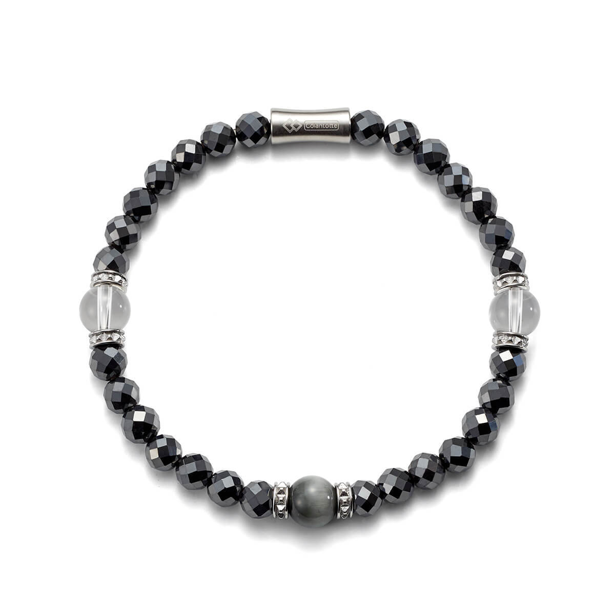 LUCEαのシンプルさに天然石の水晶とイーグルアイを組み合わせた腕用磁気アクセサリー。