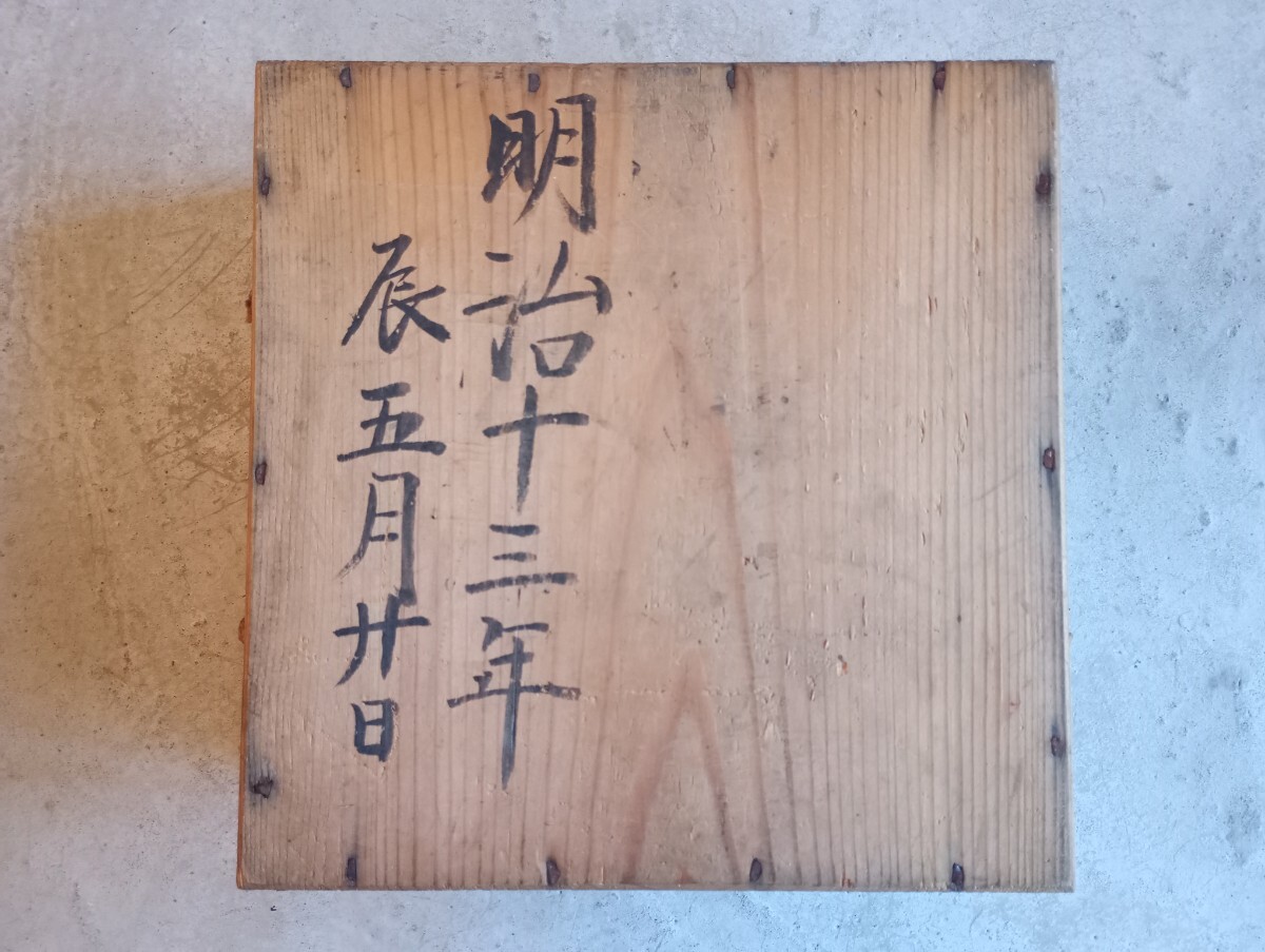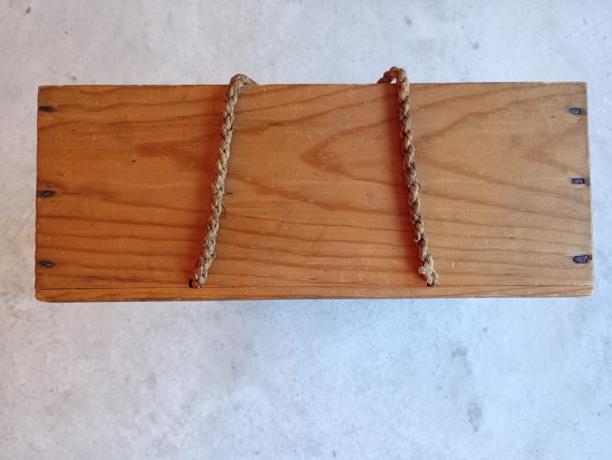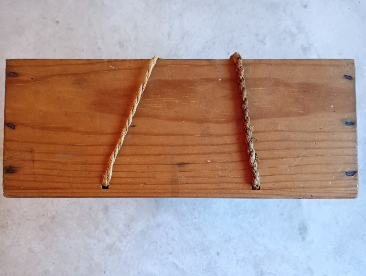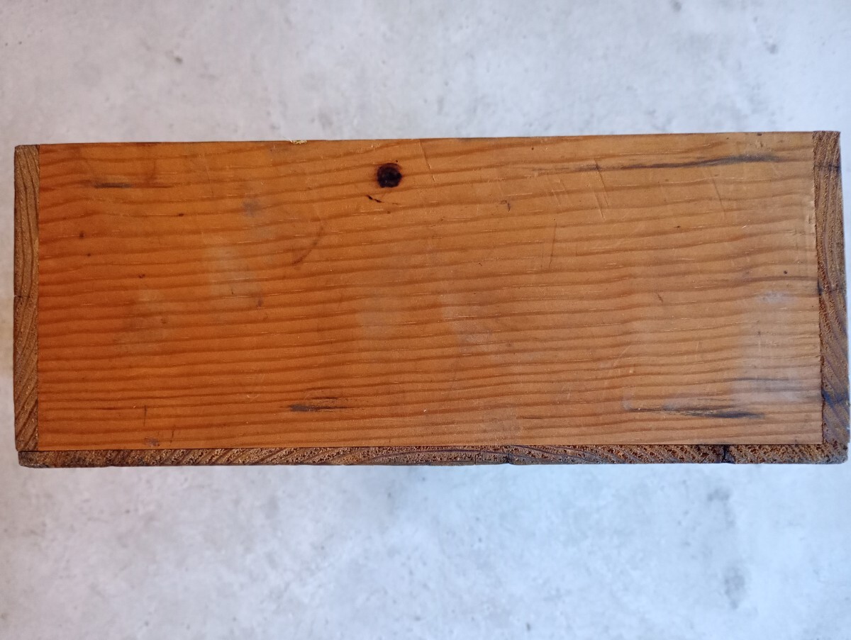 | 【商品の説明】 明治期の木箱。 旧家の蔵に保管されていたものです。 サイズ:縦約27cm横約27cm高さ約11cm ※素人寸法ですので多少の誤差はご了承下さい。 【商品の状態】 紐が細くなっている部分、弱くなっている部分があります。また、細かな傷、小さな欠け、凹み、汚れ、墨書きなどありますが、作りはしっかりしていてそれ以外大きな破損などはなくまだ使用して頂けると思います。 ※古いものですので見落としがあるかもしれません。ご理解のある方のみ落札して下さい。 |