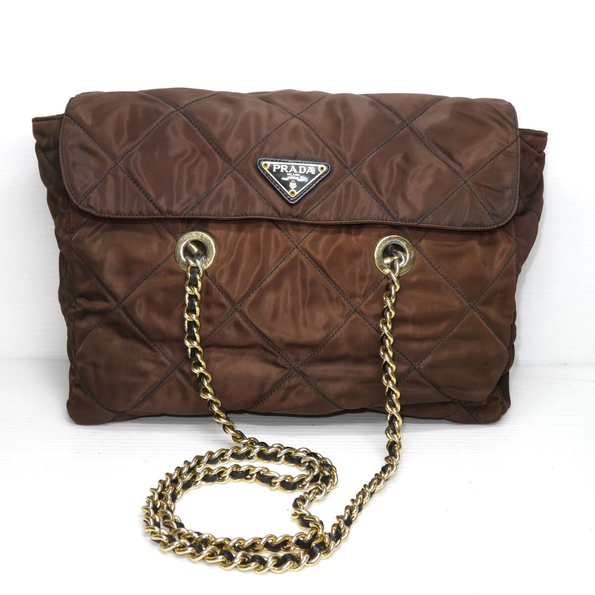 プラダ チェーンショルダーバッグ ナイロンブラウン NO.12