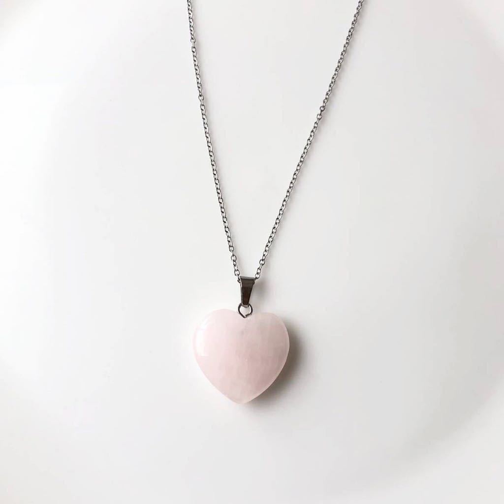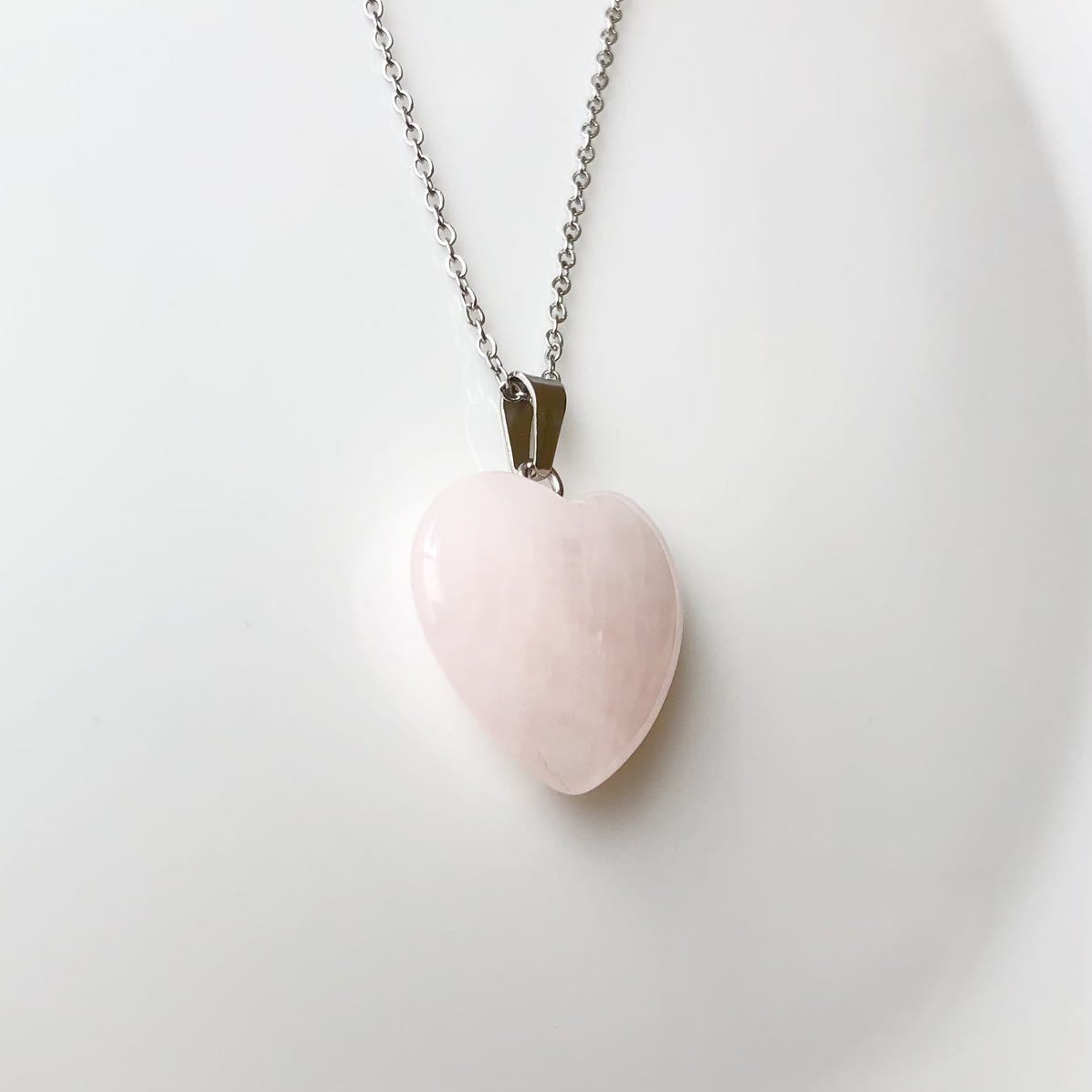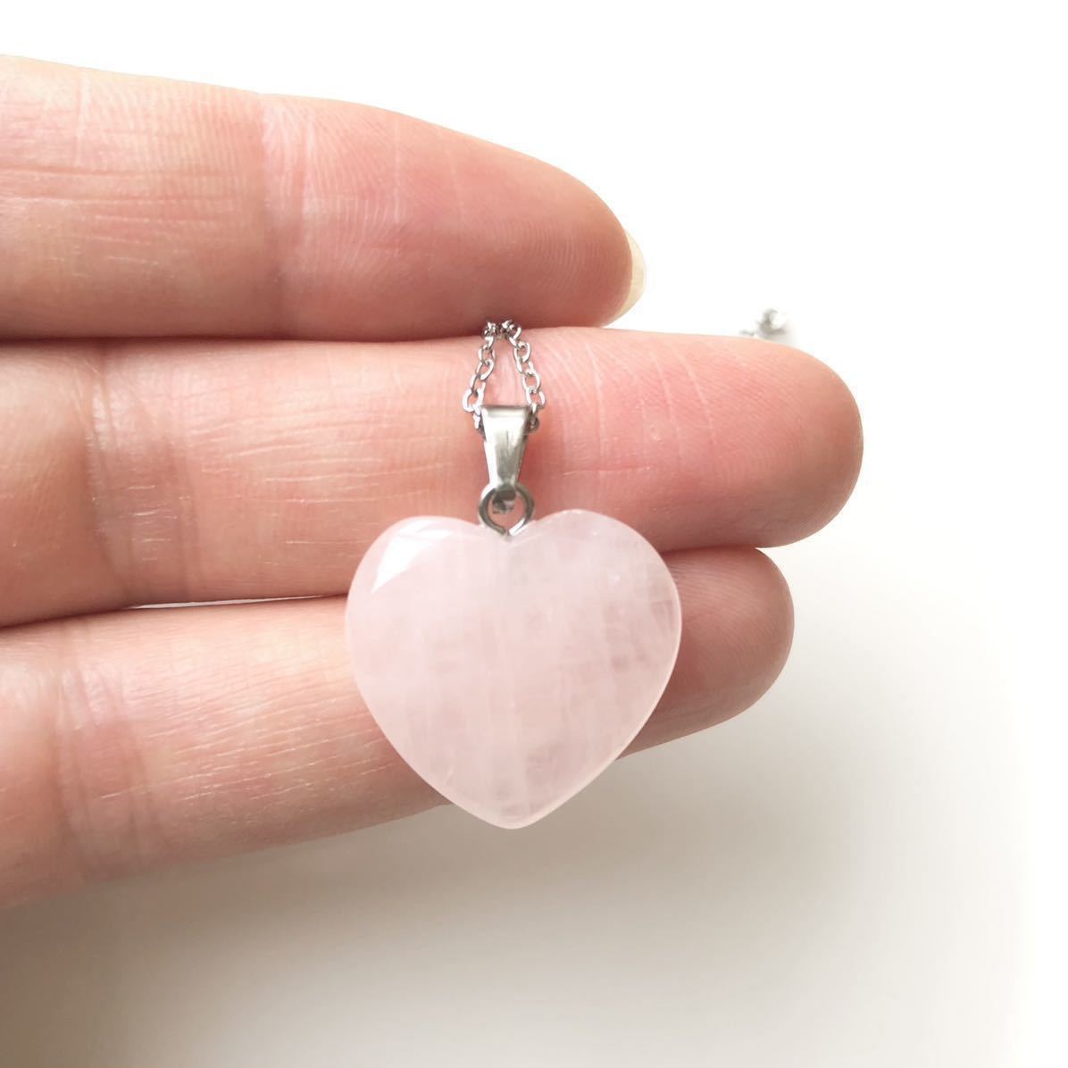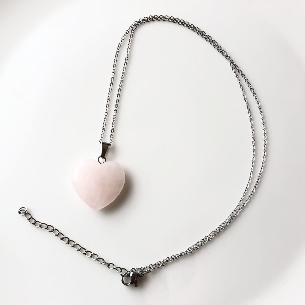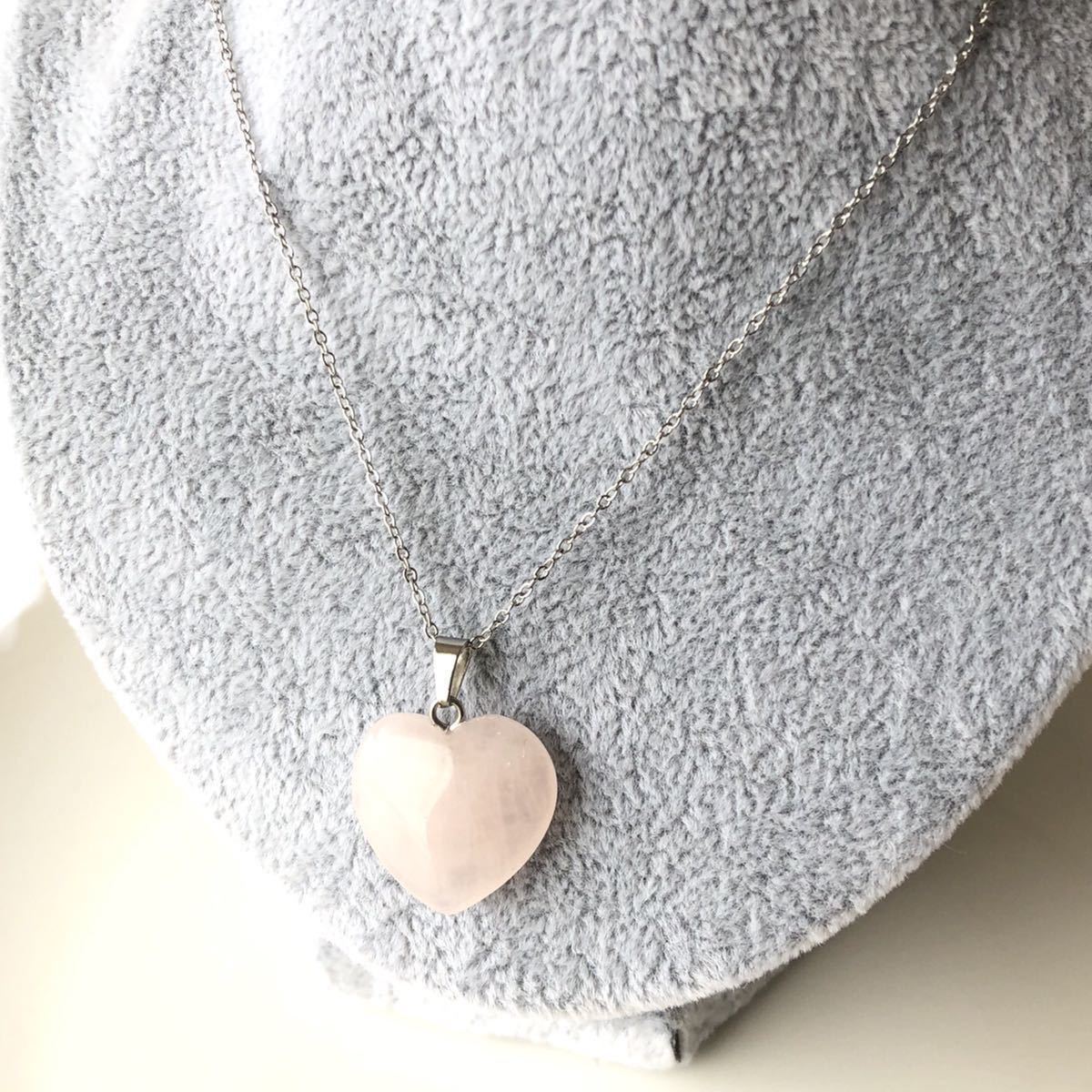 ハート型が可愛らしい、天然ローズクォーツのパワーストーンネックレスです。