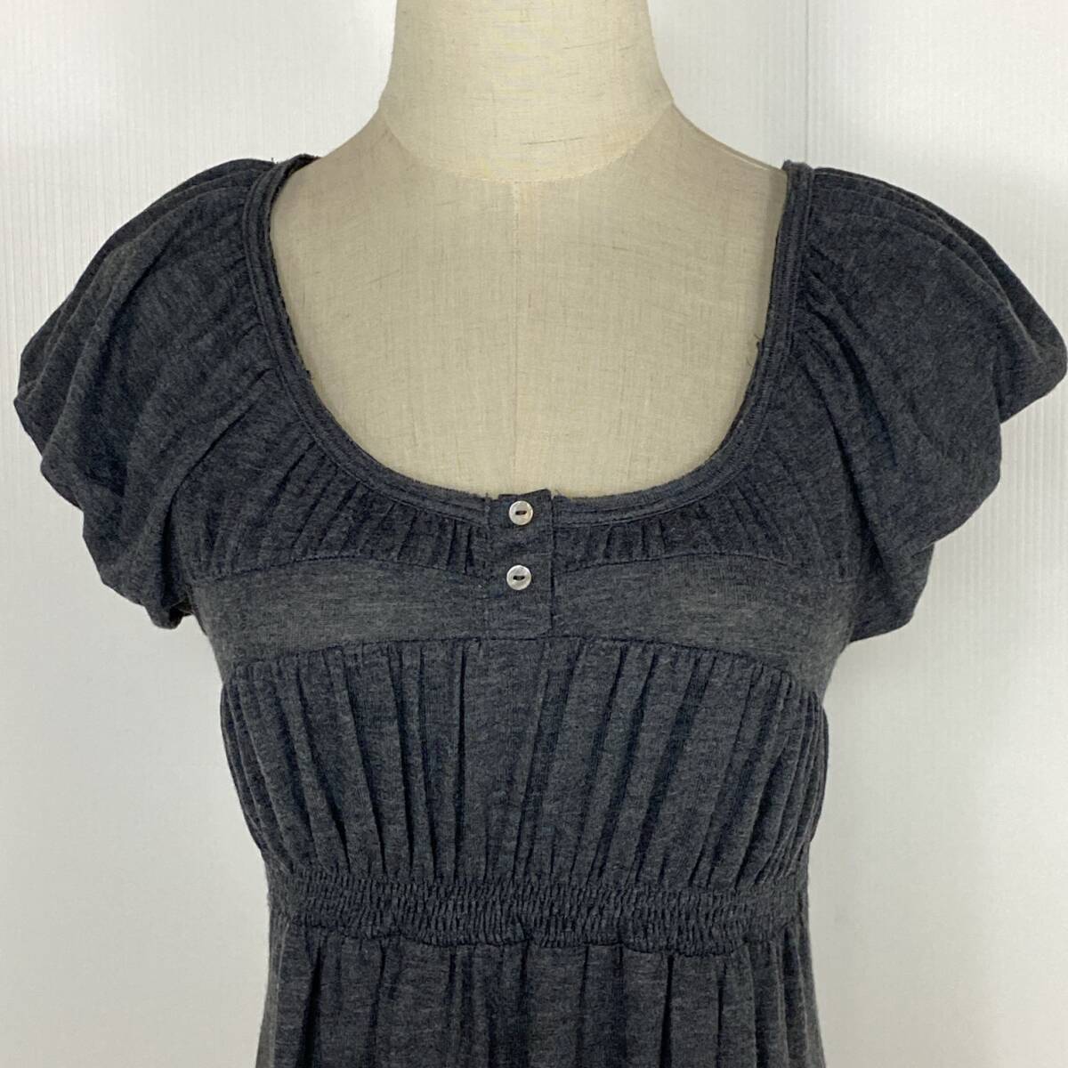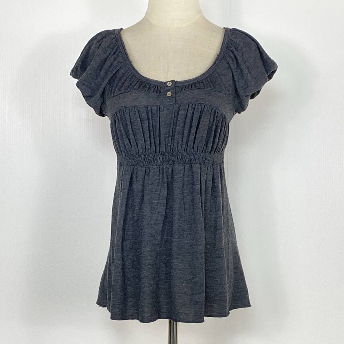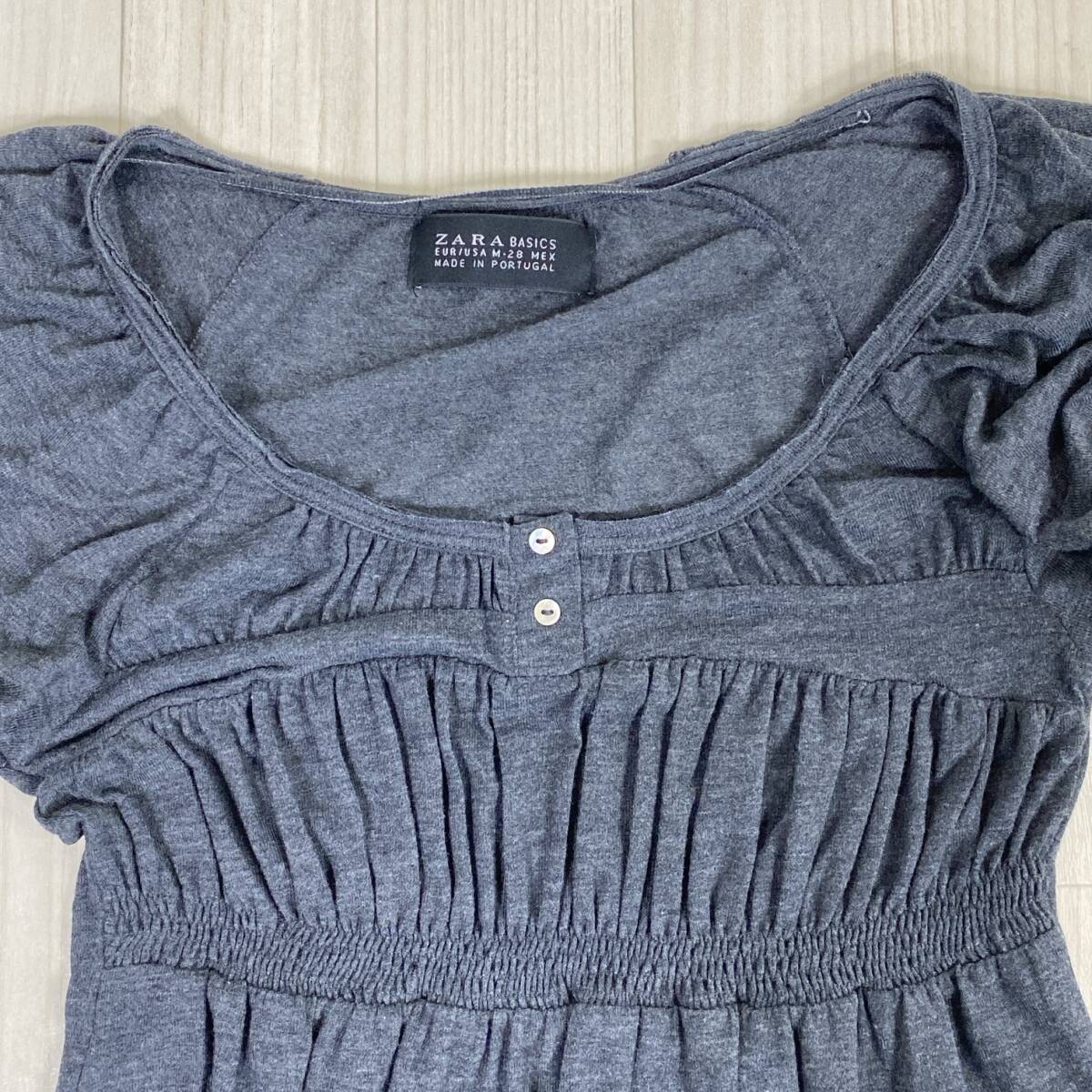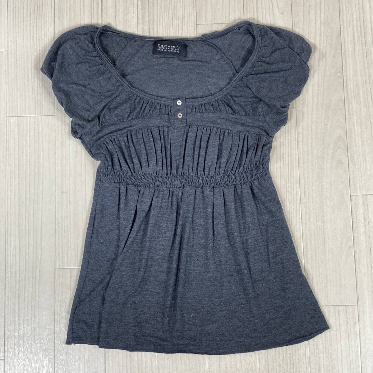 YZ1368 美品 ZARA BASIC ザラベーシック レディース 半袖 シフォントップス Mサイズ グレー 万能 キュート かわいい シンプル USED 古着