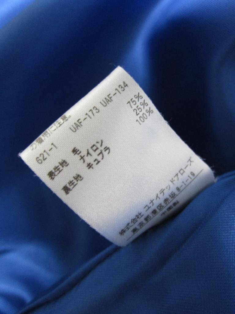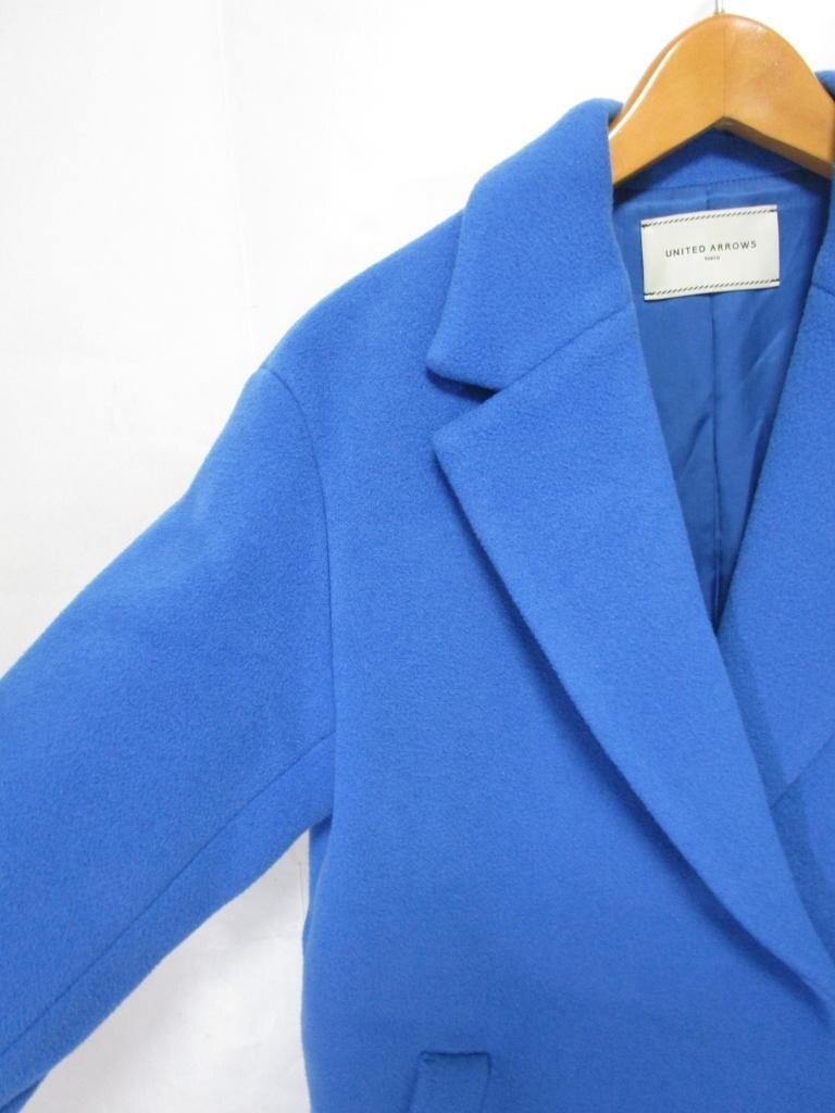 【送料込】 UNITED ARROWS ユナイテッドアローズ コート ブルー 青 無地 ウール混 テーラードコート 華やか size36 S アウター/964523