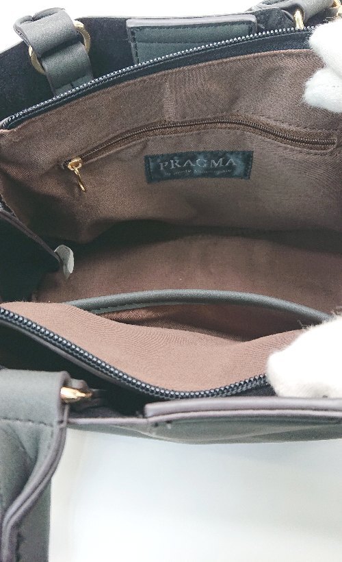 ◇ PRAGMA プラグマ 2WAY シンプル ミニサイズ ハンド ショルダー バッグ チャコールグレー レディース E
