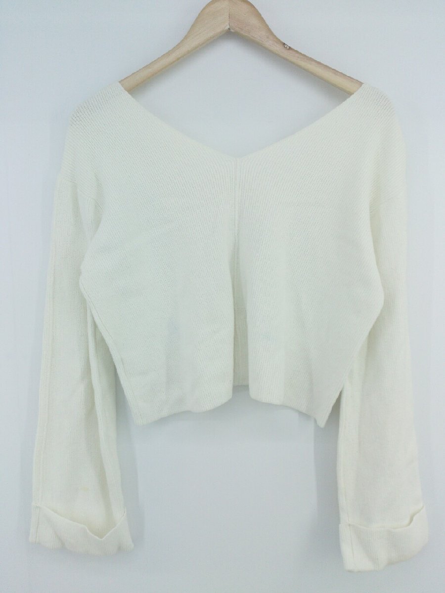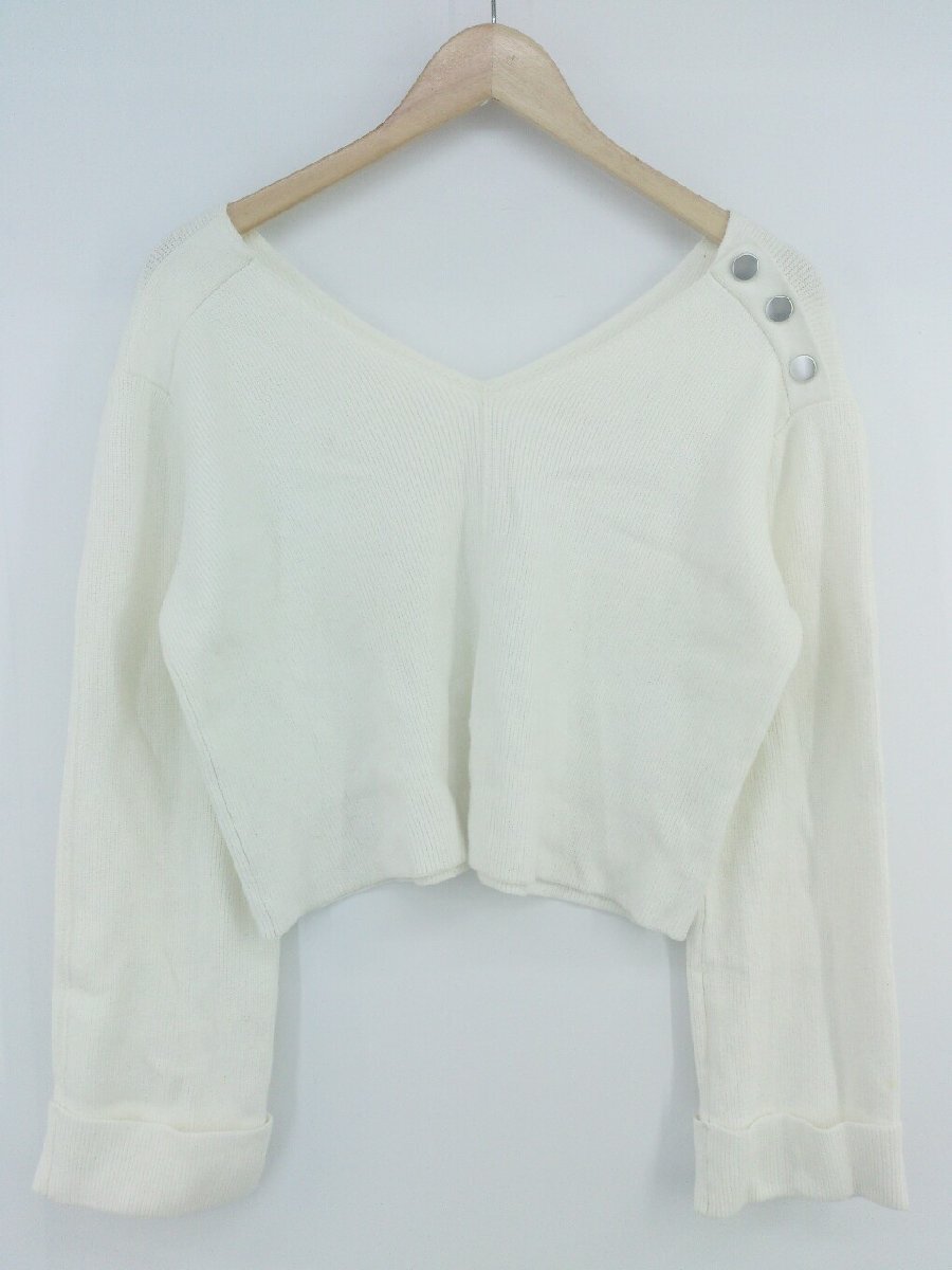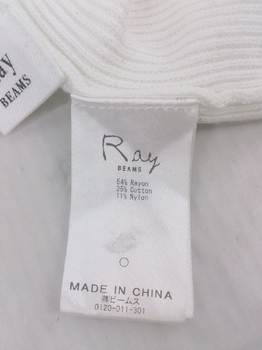 ◇ Ray BEAMS Vネック サイドボタン ロールアップ 長袖 カットソー プルオーバー アイボリー系 レディース P