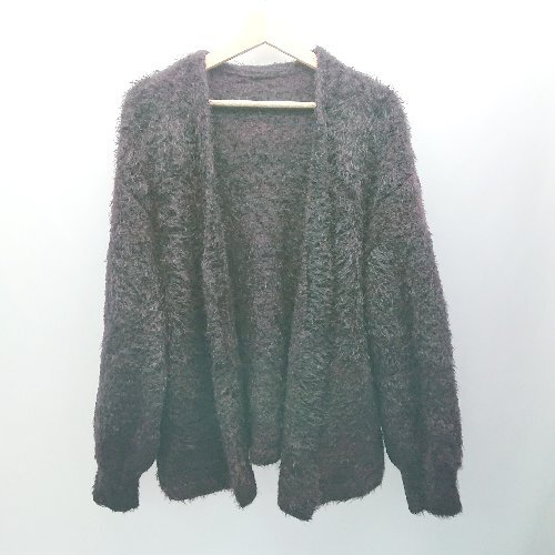◇ CITY シティ 前ボタン閉めなし 毛皮素材 冬物 長袖 カーディガン サイズ1 ブラック レディース E