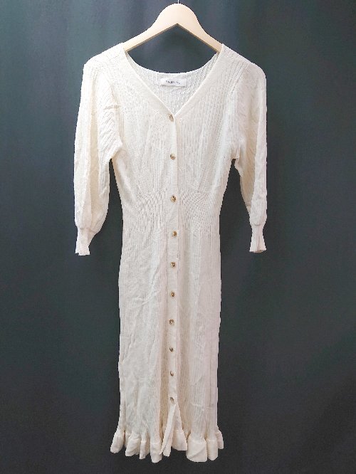 ◇ misch masch セーター ニット フロントボタン 羽織り ガーリー 長袖 カーディガン サイズM ベージュ レディース E