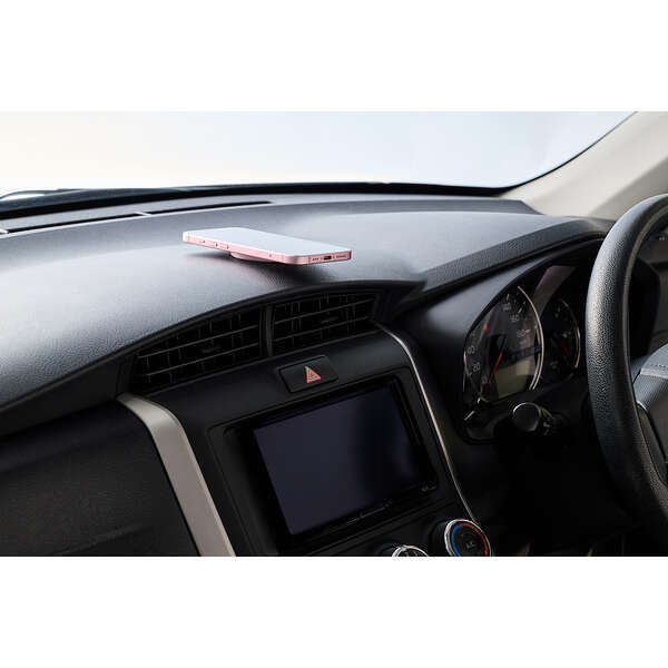 | ●両面に施された滑り止めゴムにより、少し傾斜のある台や 車のダッシュボードなどに置いたときでも、安定した状態を保つことができます | |