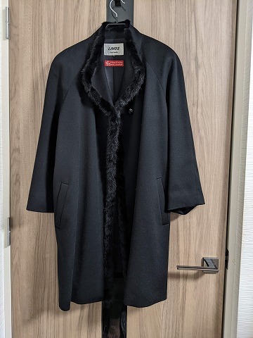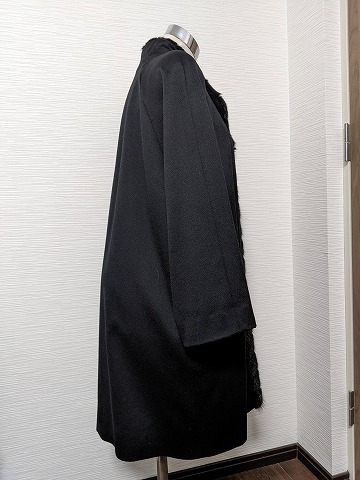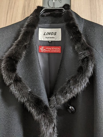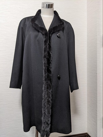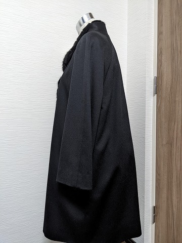 【送料無料】026 ミンクトリム 毛皮 PIACENZA カシミヤ 100% ロングコート ブラック 大きいサイズ 美品 ブラック