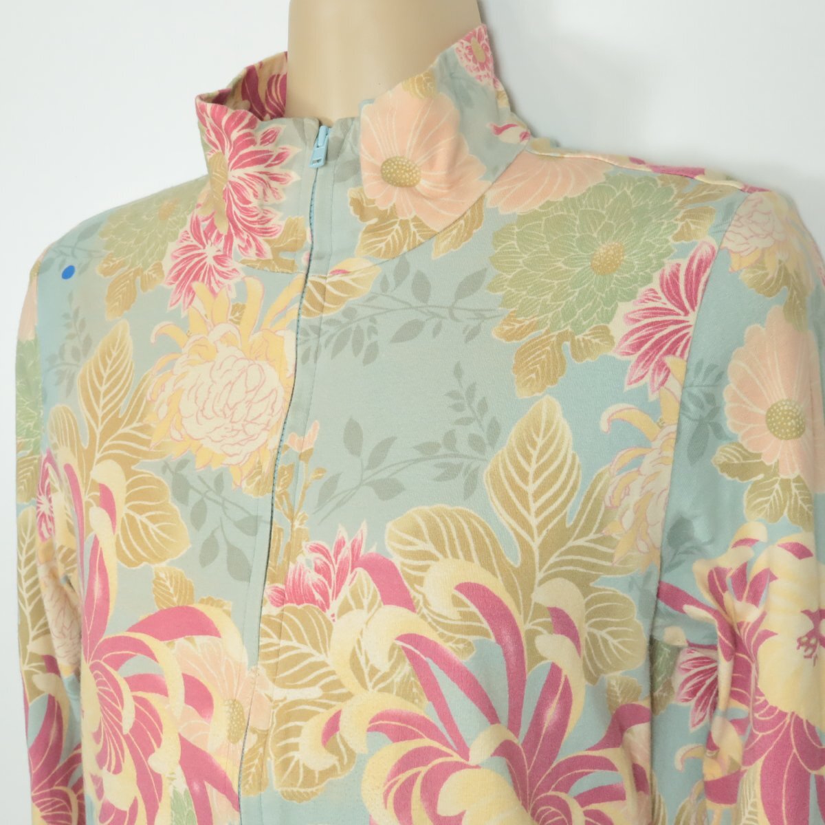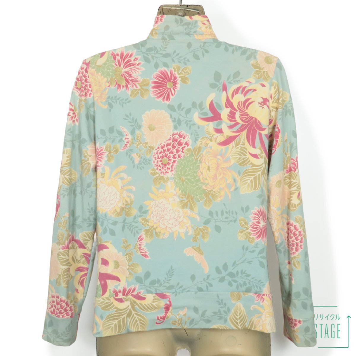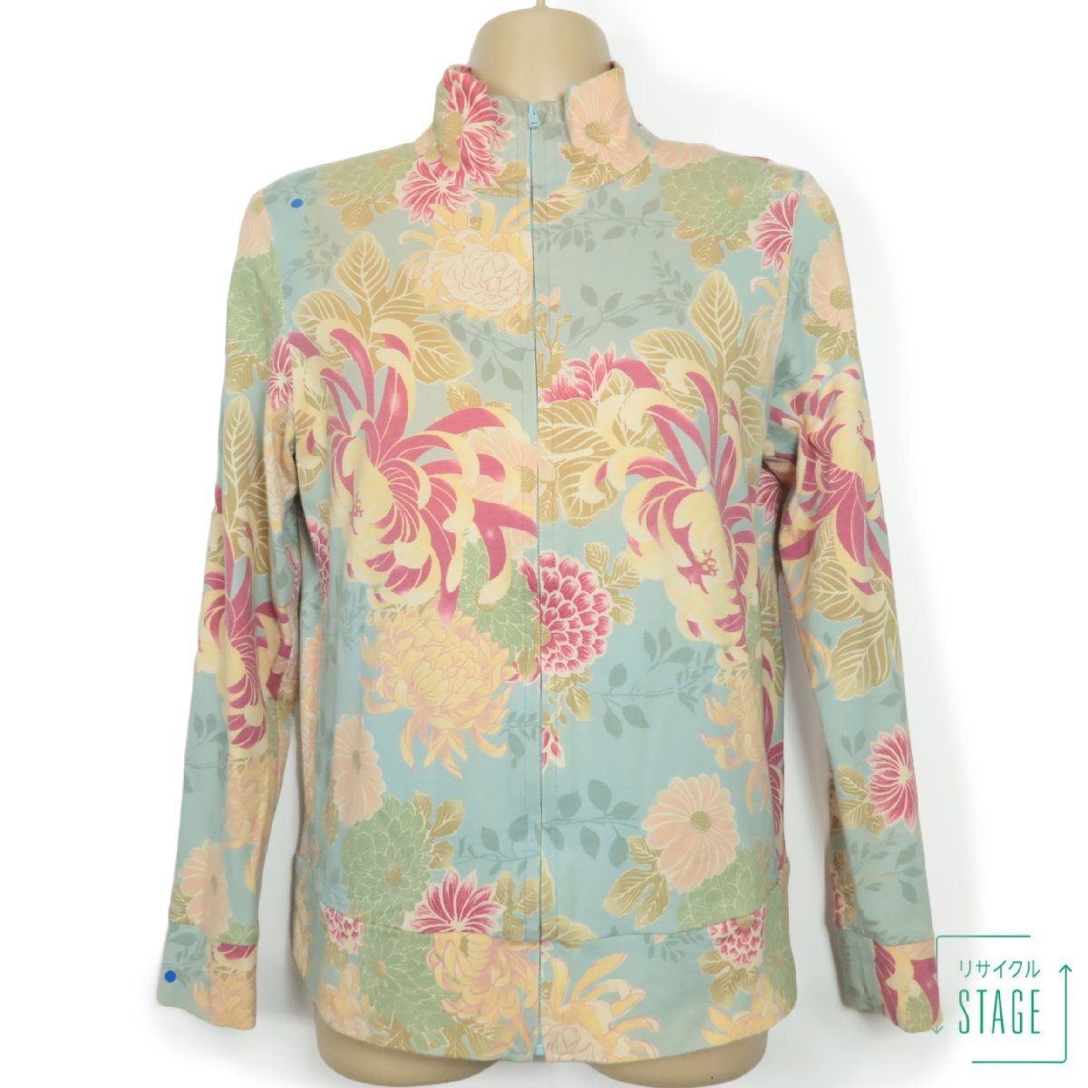 グラムディ★和柄 ジップアップ パーカ サイズ1 水色系 菊柄 ハイネック ストレッチ素材♪コットン混♪薄手 z10631