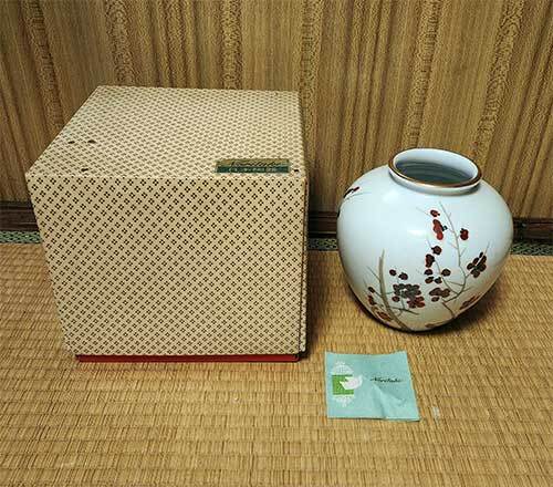 花瓶 Noritake ノリタケ 梅 ウメ 陶器 セラミック 日本陶器 昭和 レトロ アンティーク 元箱付 未使用 貴重