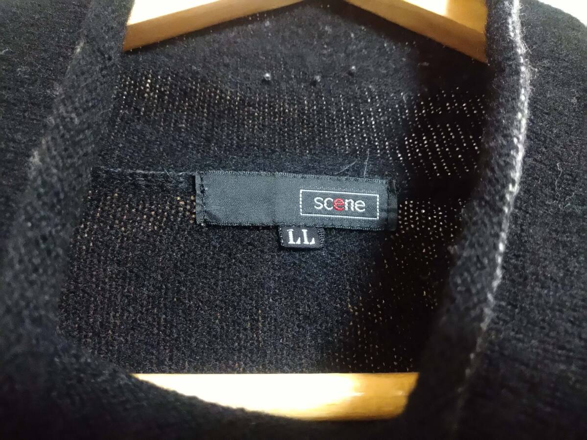SCENE [シーン]ハイネック ニット シャツ/LLサイズ/ブラック/黒/毛100%/セーター/トップス/古着