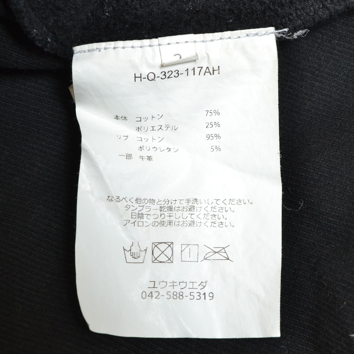 〇524159 YUKI UEDA ○トレーナー スウェットシャツ エルボーパッチ HQ323117AH サイズ2 メンズ ブラック