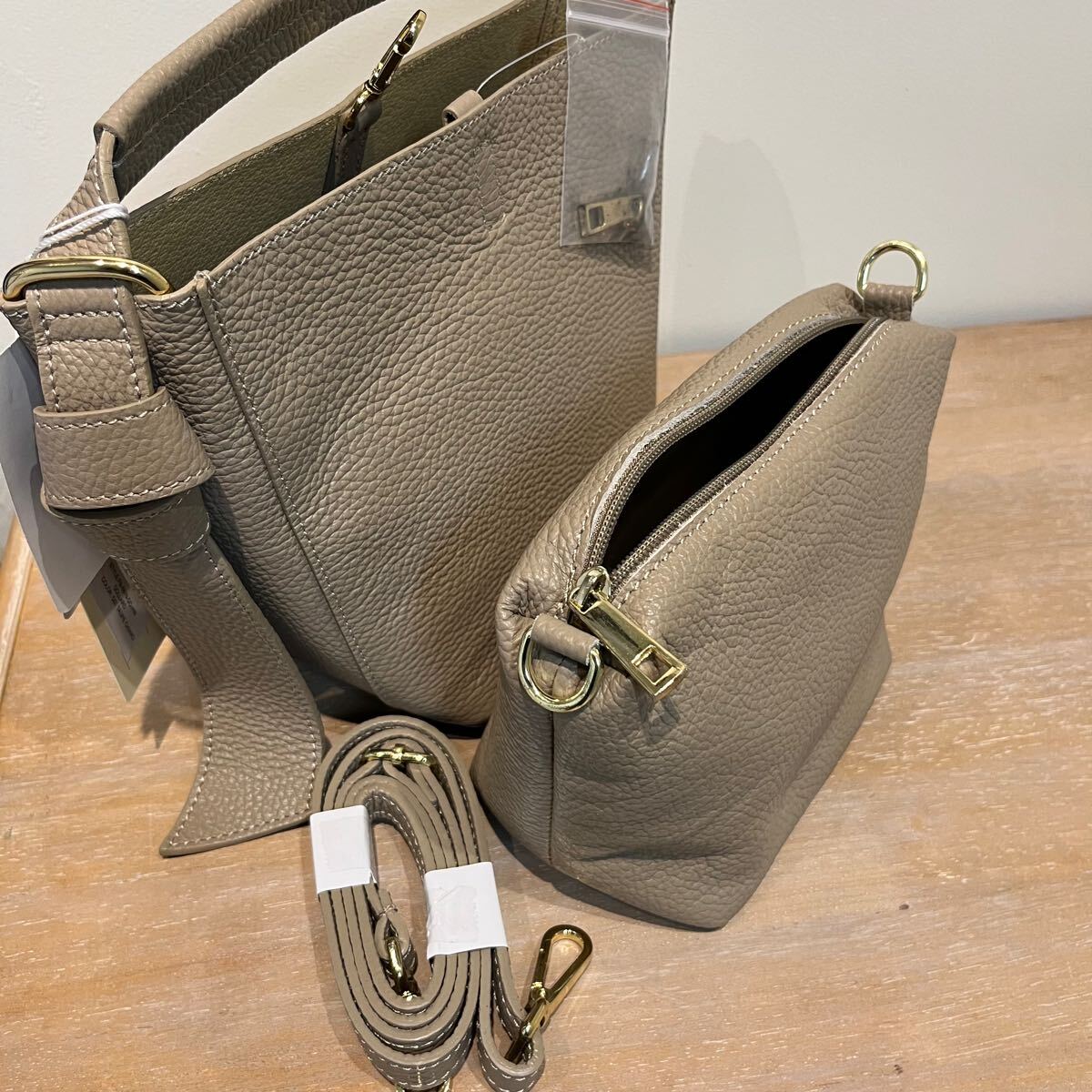 新品 イタリア製 AULENTTI オウレンティ ハンドバッグ ショルダーバッグ 4way ポーチ付き レザー トートバッグ 本革 ベージュ 玉mc3400