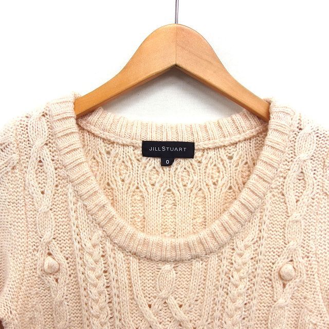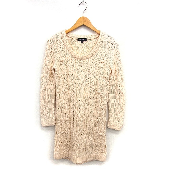 ジルスチュアート JILL STUART ニット ワンピース フレア ミニ リブ ケーブル編み モヘヤ混 ウール混 長袖 0 ベージュ /NT33 レディース