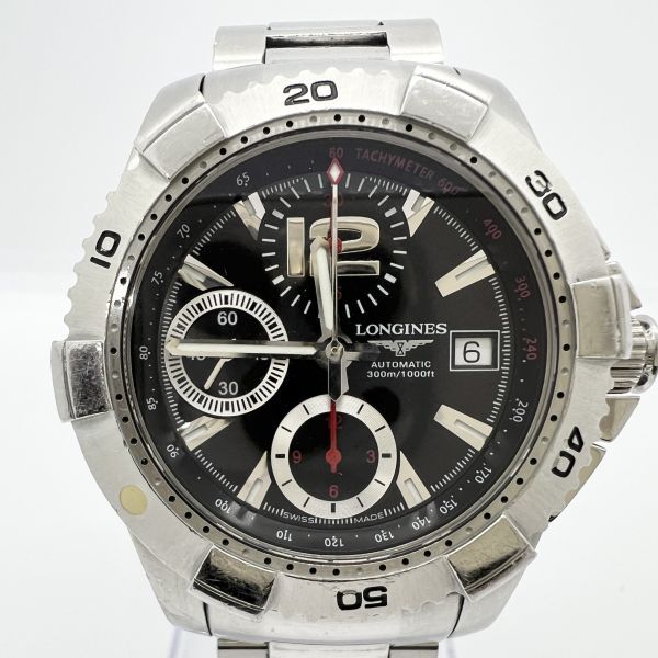LONGINES ロンジン ハイドロコンクエスト L3.651.4 クロノグラフ ブラック文字盤 メンズ AT 自動巻き 腕時計