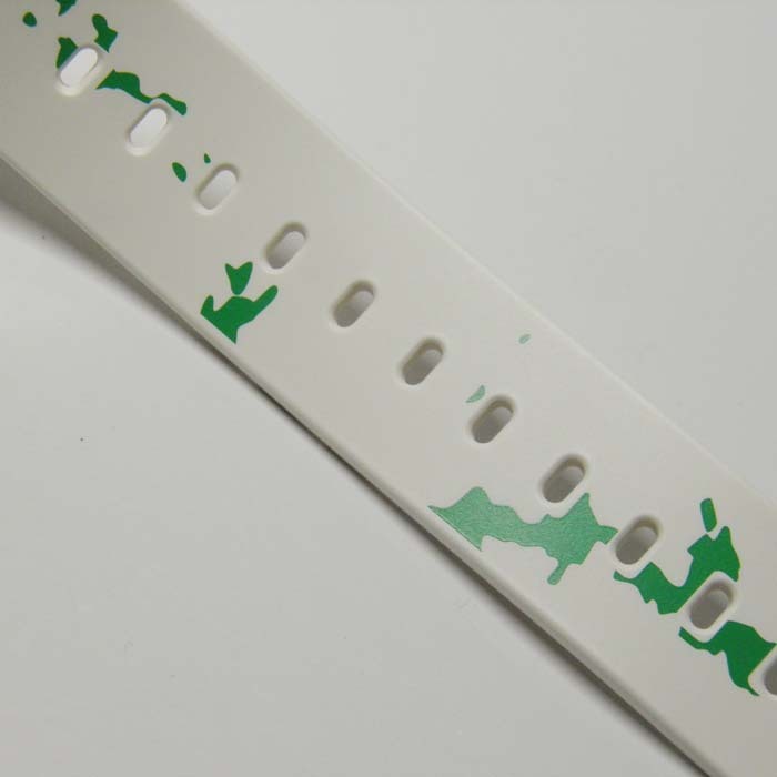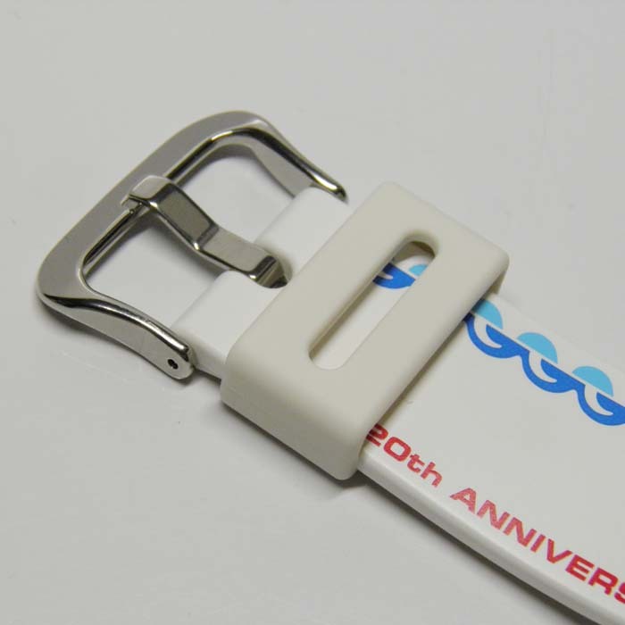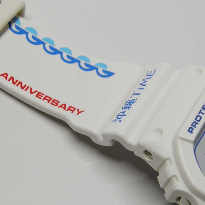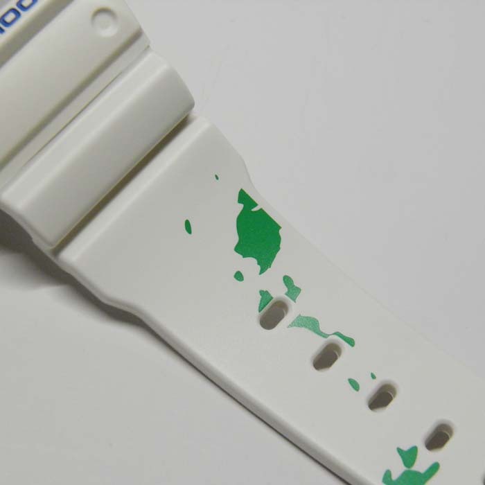 沖縄の海をイメージした爽やかなホワイトカラーにバンドには島がデザインされ、