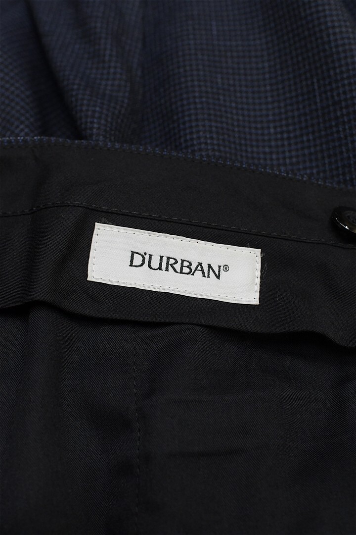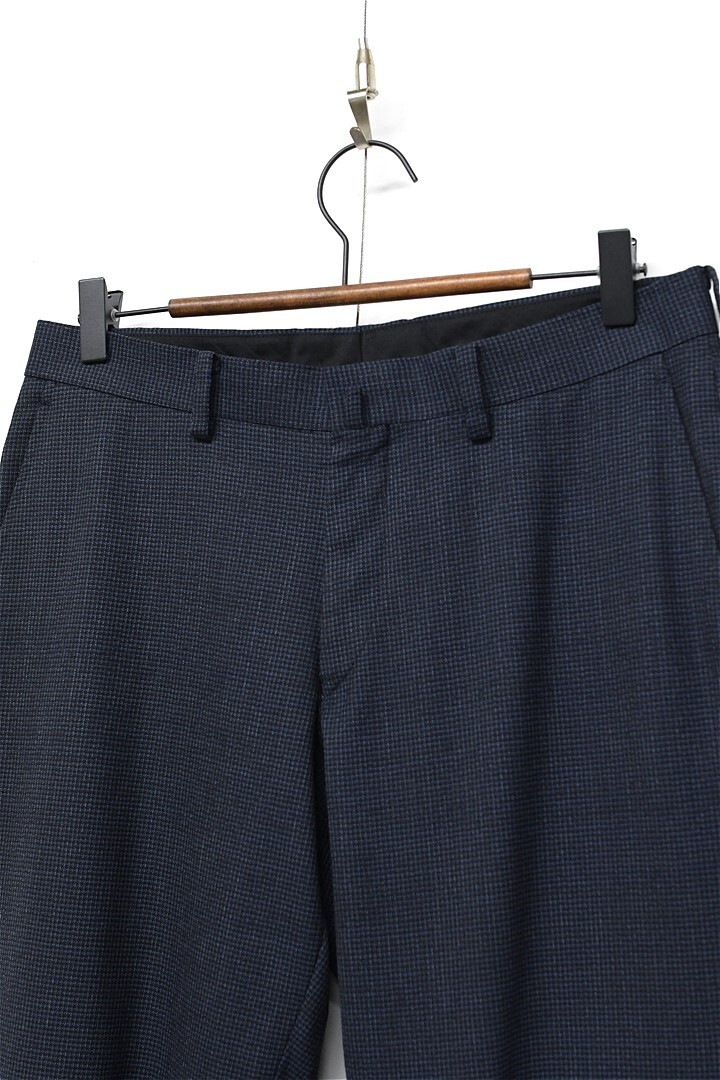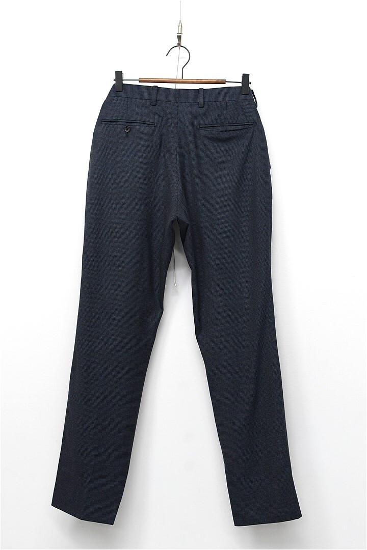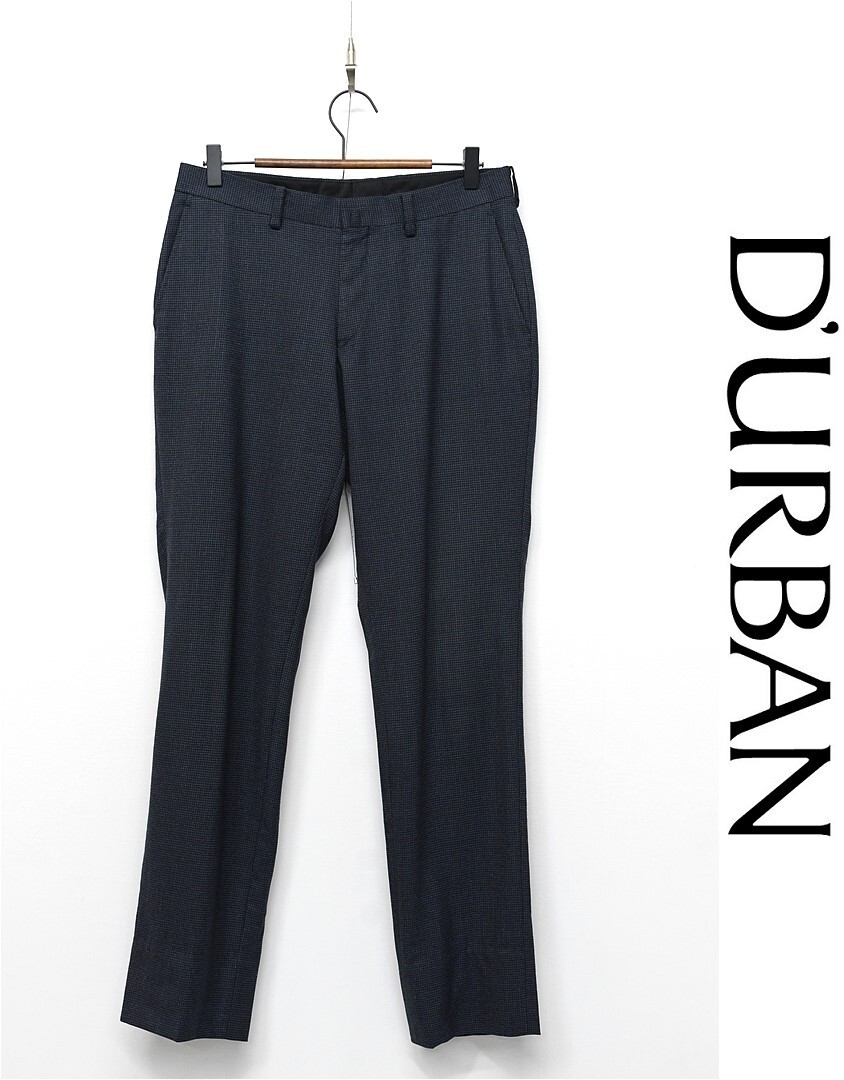 D456/DURBAN スラックス パンツ 千鳥格子 ノータック 裾シングル スリム 細身 ウール 79 S相当 紺 青