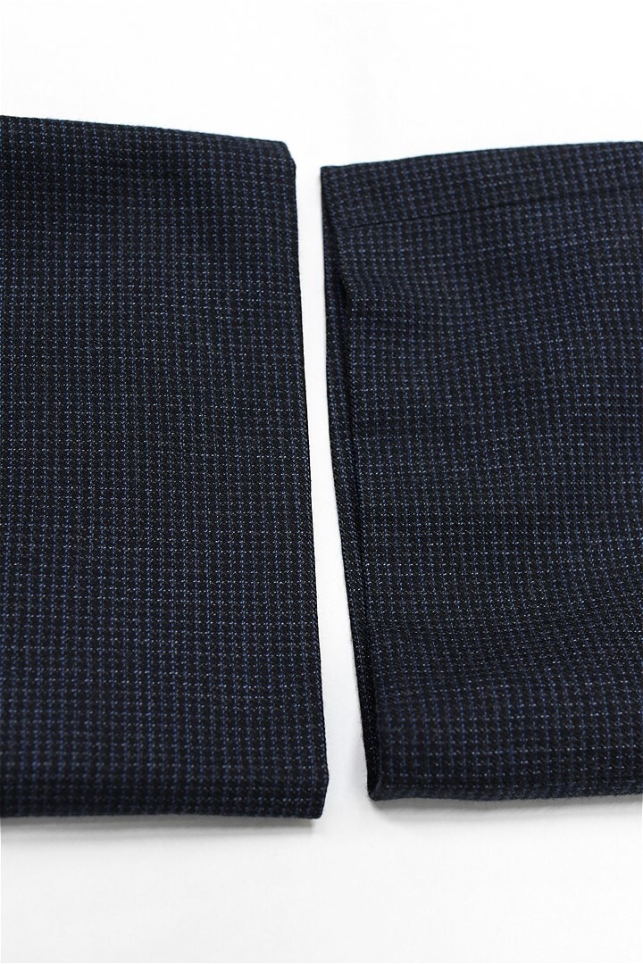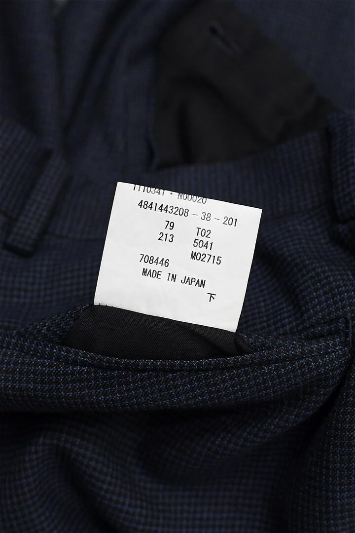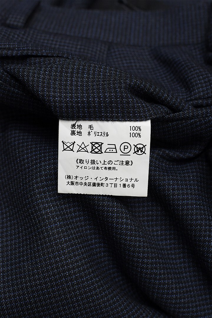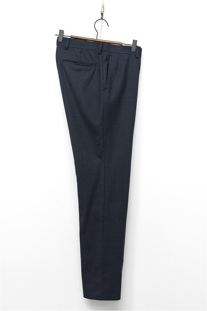 D456/DURBAN スラックス パンツ 千鳥格子 ノータック 裾シングル スリム 細身 ウール 79 S相当 紺 青