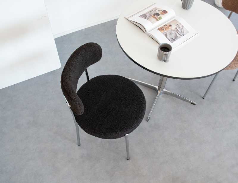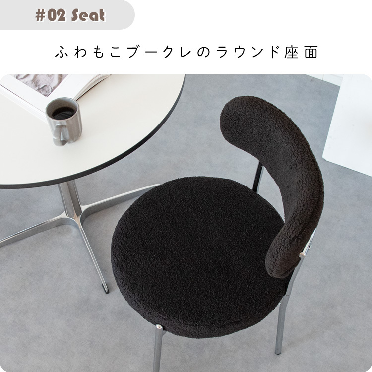 ふわもこなブークレ生地とシルバーフレームの丸くて可愛いダイニングチェア『Anti(アンティー)』。