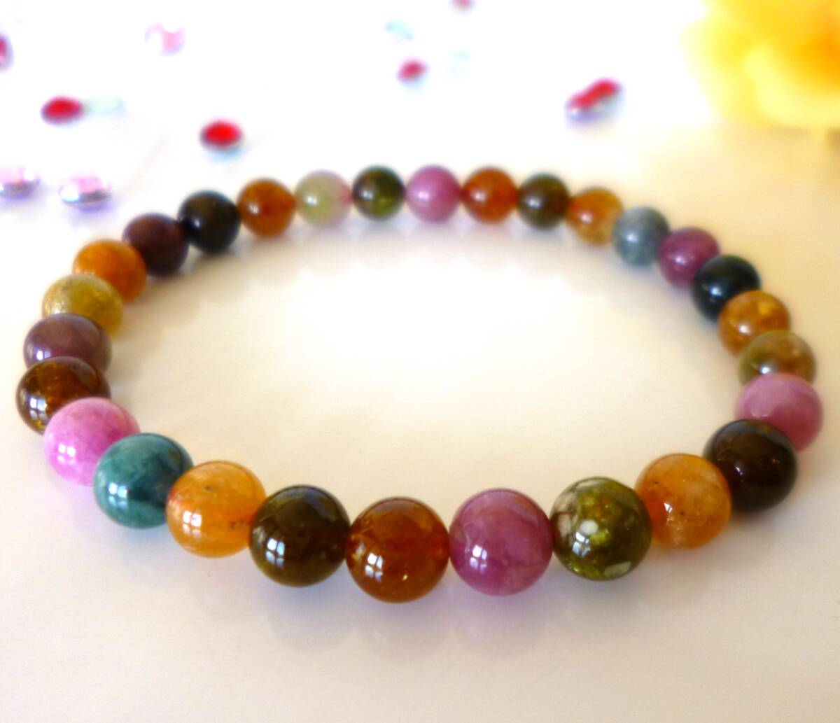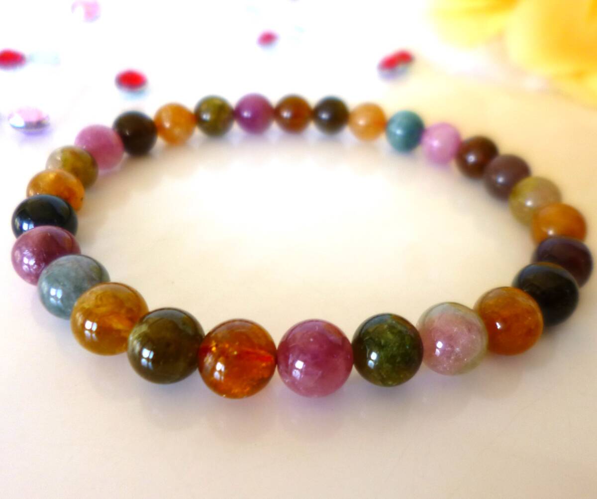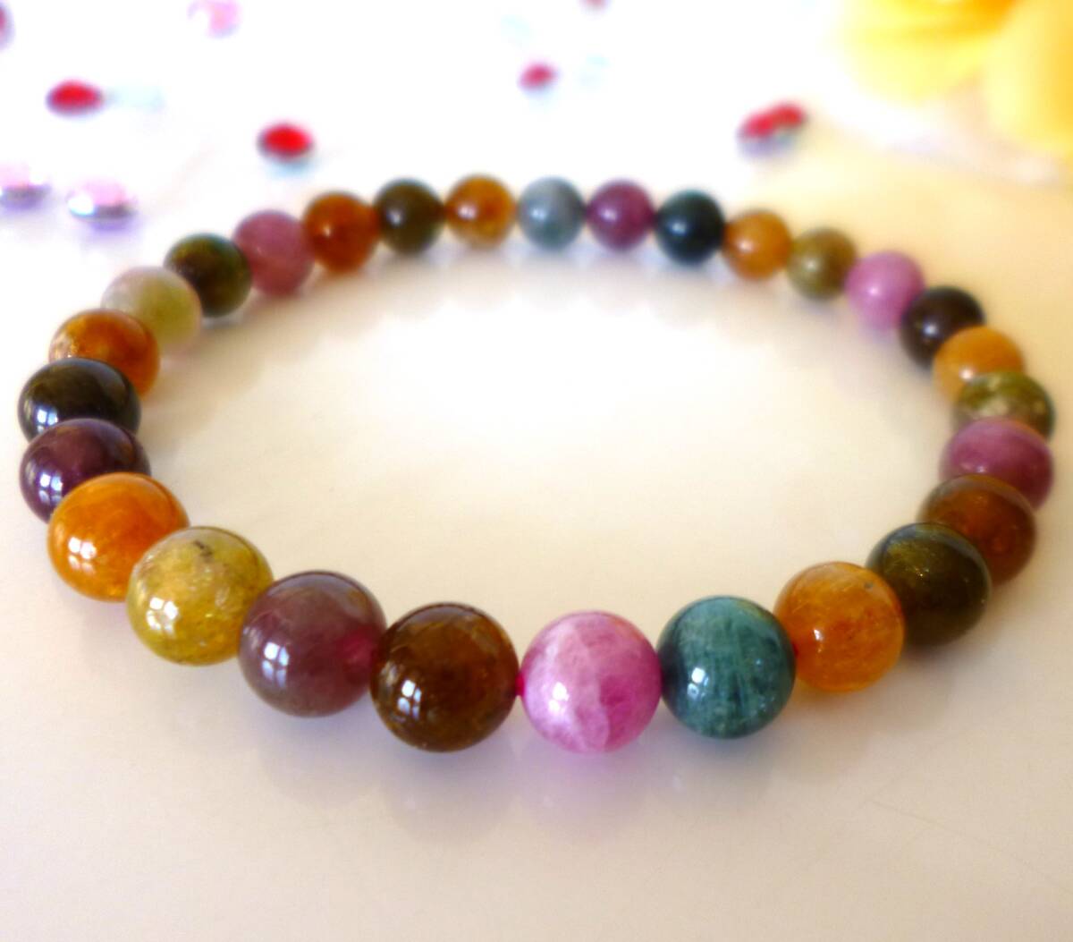 最強エネルギー☆集中力☆洞察力☆自律神経バランス改善☆ ☆マルチカラートルマリン☆☆10月の誕生石☆ ☆6.5mm☆ ☆16cm☆