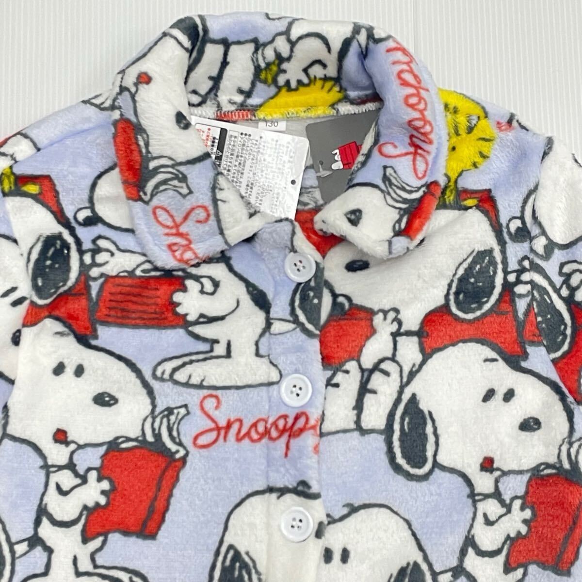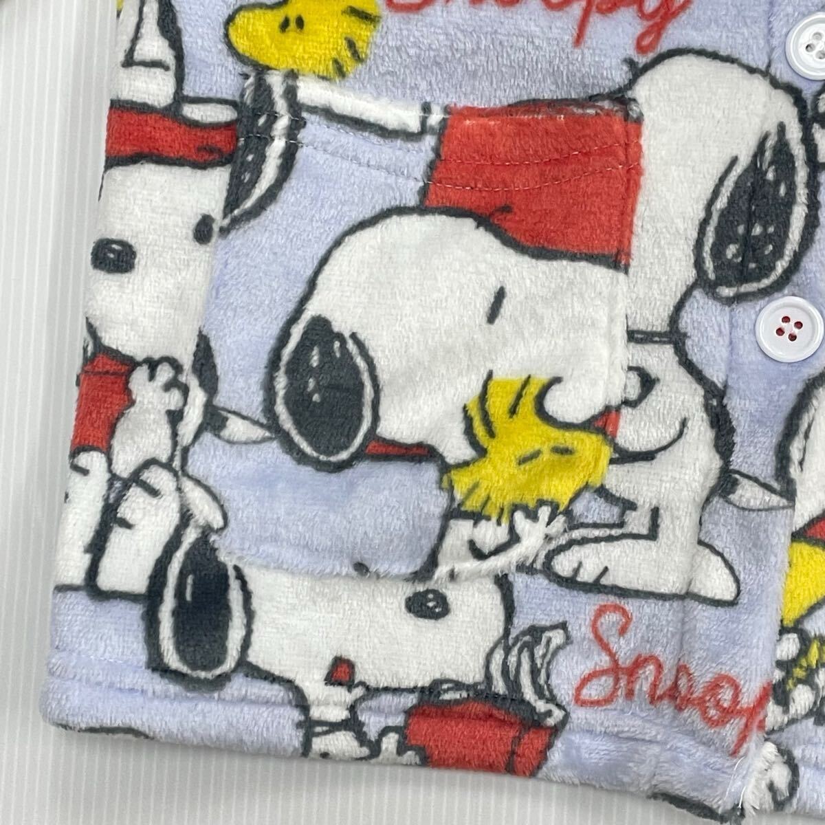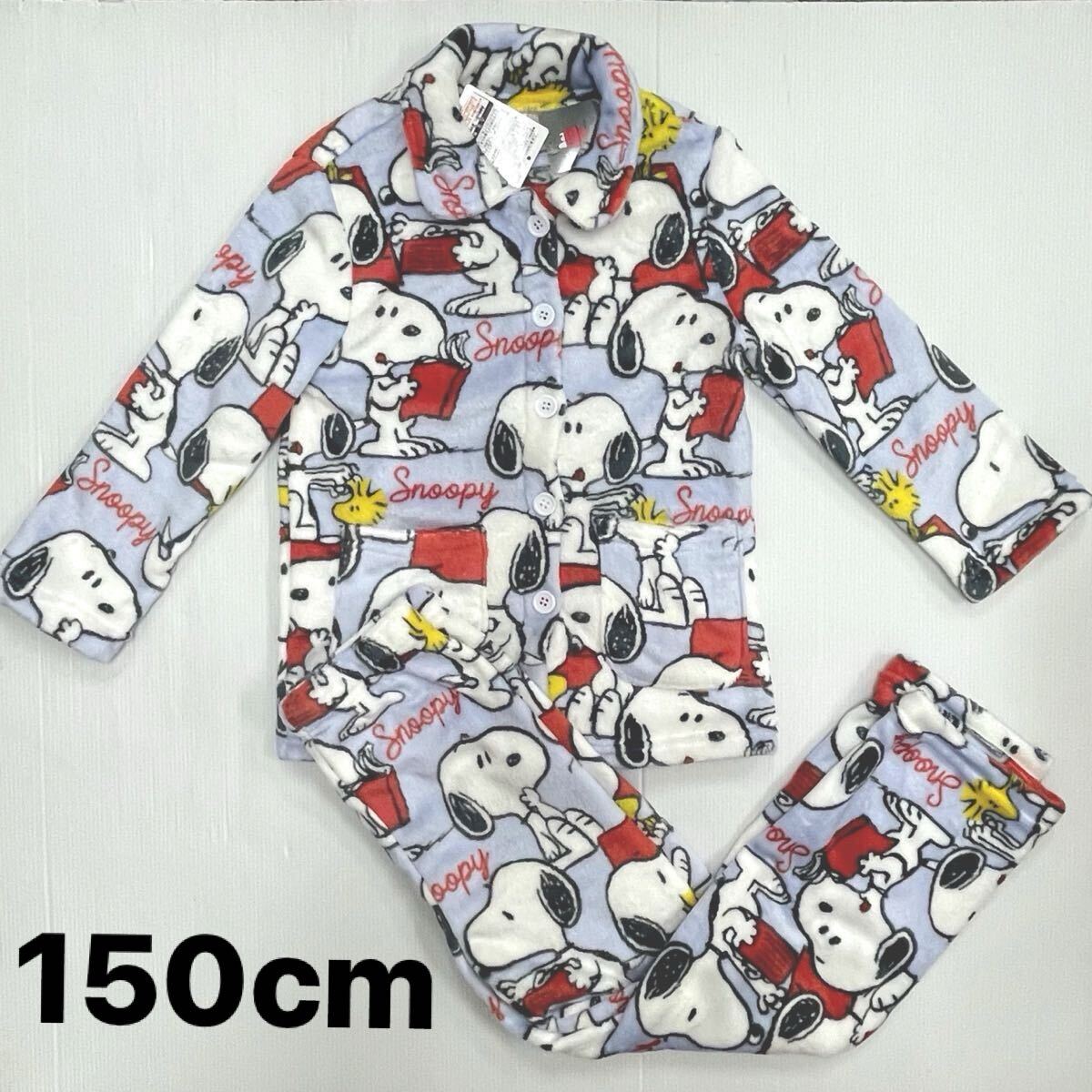 新品63437 スヌーピー150cm ライトブルー ジュニアフリース前開き長袖フランネルパジャマ 前ボタン ルームウェアあったか素材男女兼用