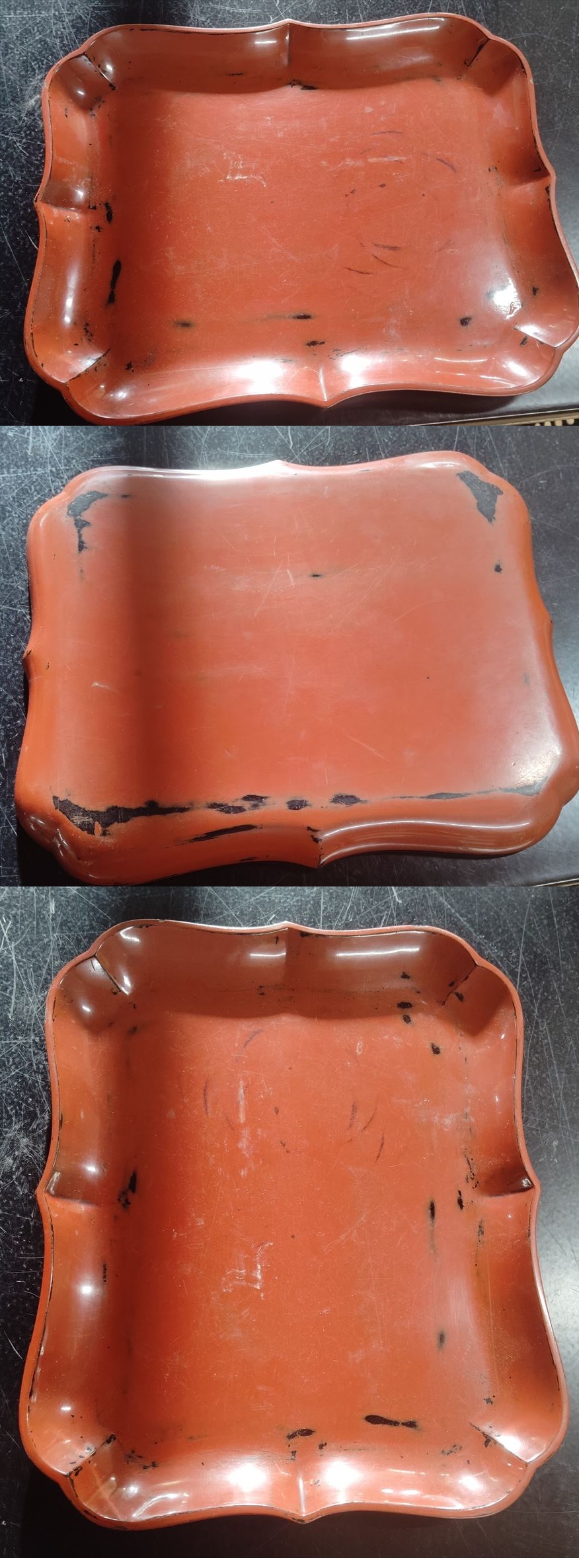 時代漆器 本時代 根来塗隅切四方盆 23.5x20㎝