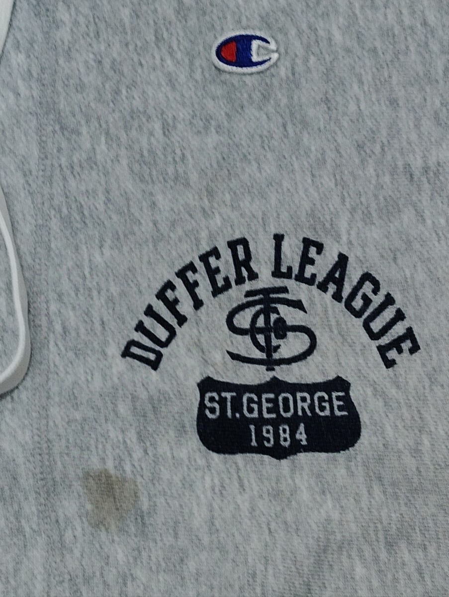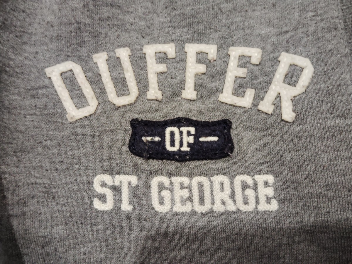 フロント左側にDUFFER OF ST GEORGEをフェルト生地とチェーンステッチでヴィンテージスウェット風にデコレーションしたアイテムです。