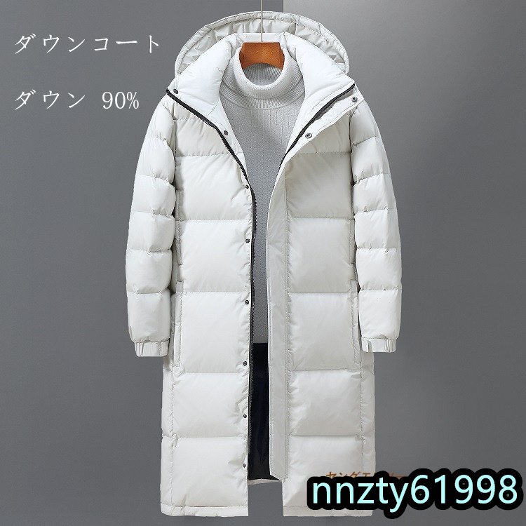 人気新品 メンズ ダウンコート フード付き ダウンジャケット ロングコート ライトダウン 秋冬 防風防寒 700フィルパワー 男女兼用 白 3XL