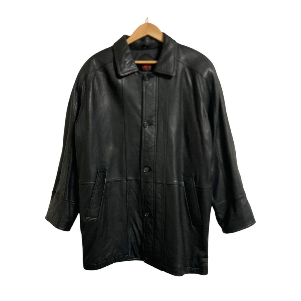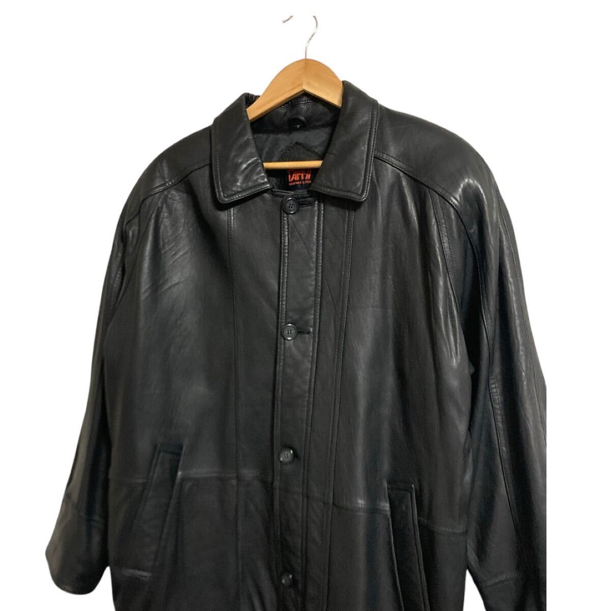 TAFF メンズ レザージャケット ステンカラー F 羊革 コート ゆったり ブラック系 (K47)★