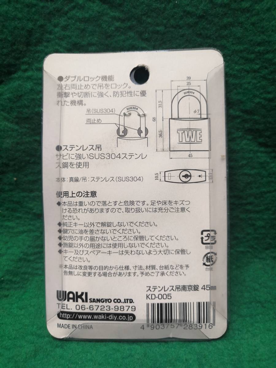 45mmステンレス吊南京錠送料全国一律ゆうメール310円
