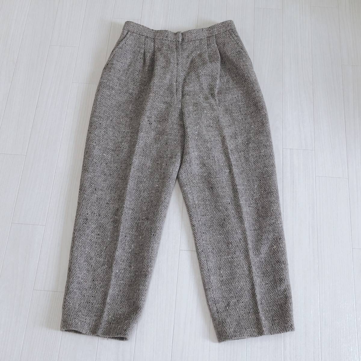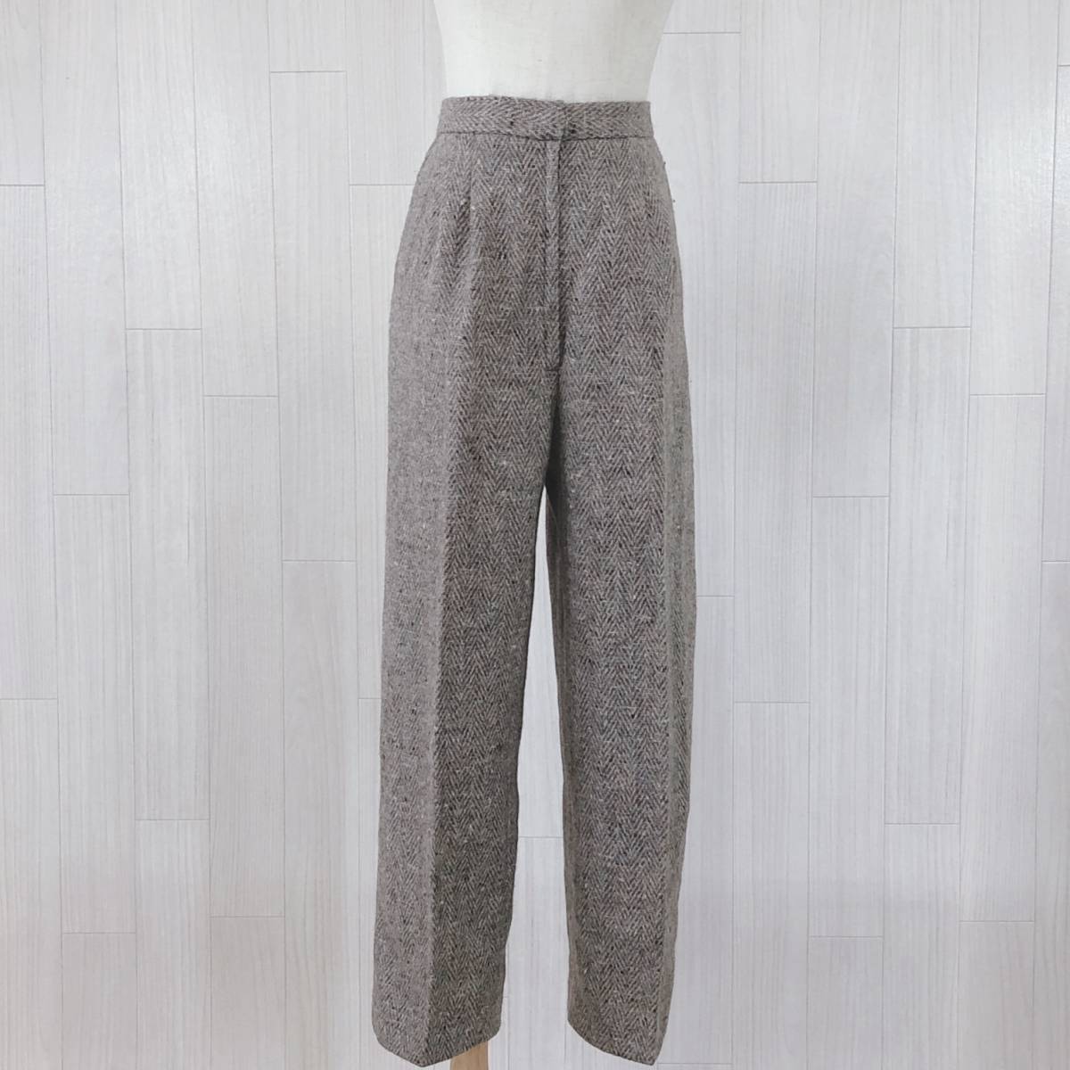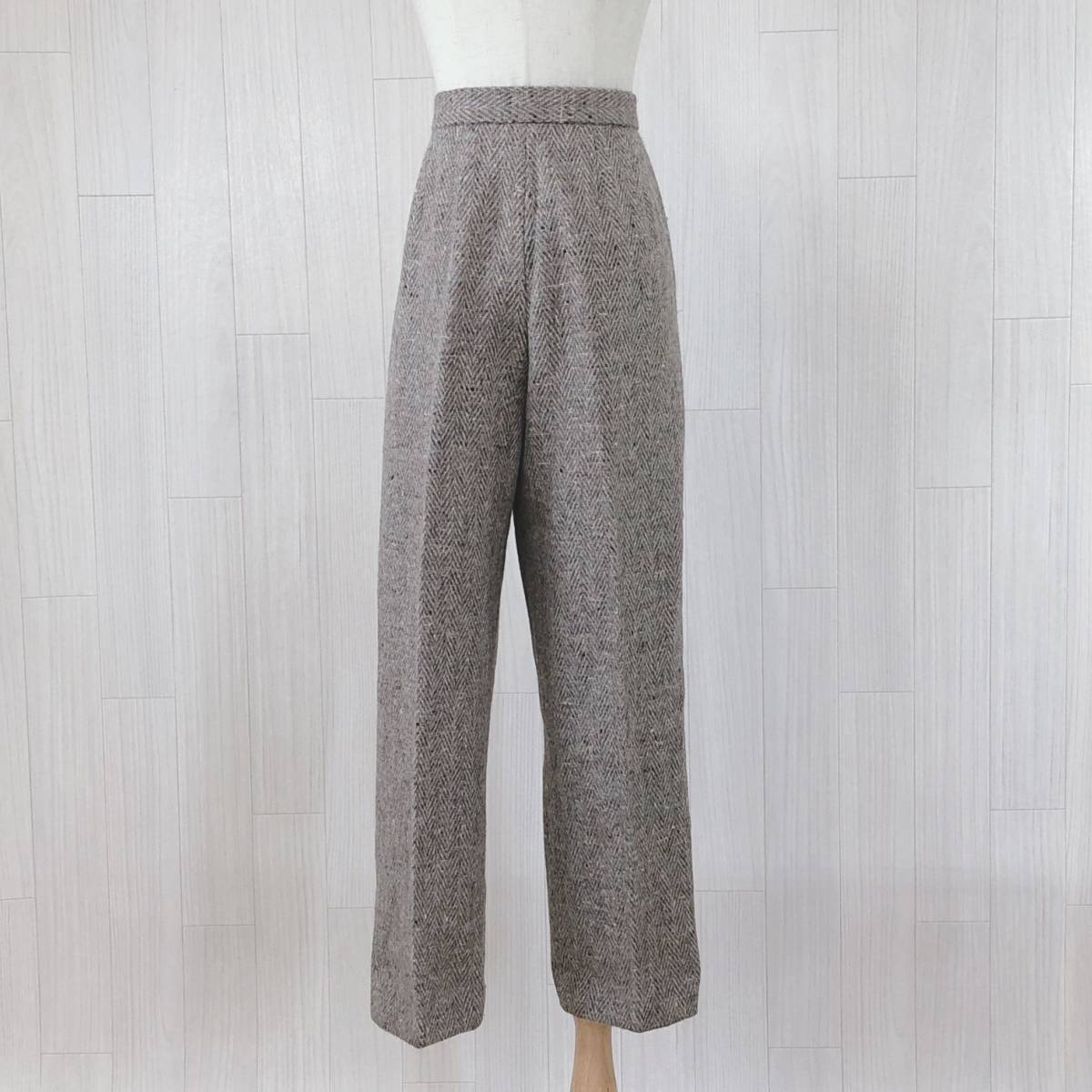 YAS0485 レディース ボトムス カジュアルパンツ ロング丈 ブラウン 茶 ベージュ ツイード柄 シック 落ち着いた 昭和レトロ 防寒 秋冬