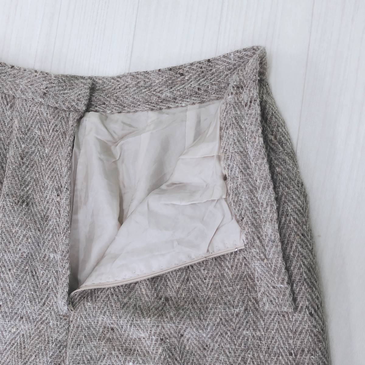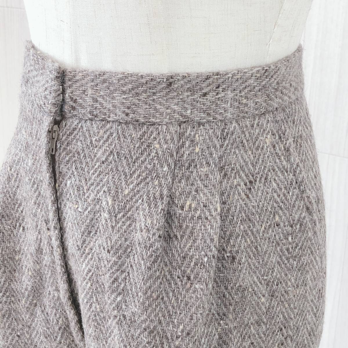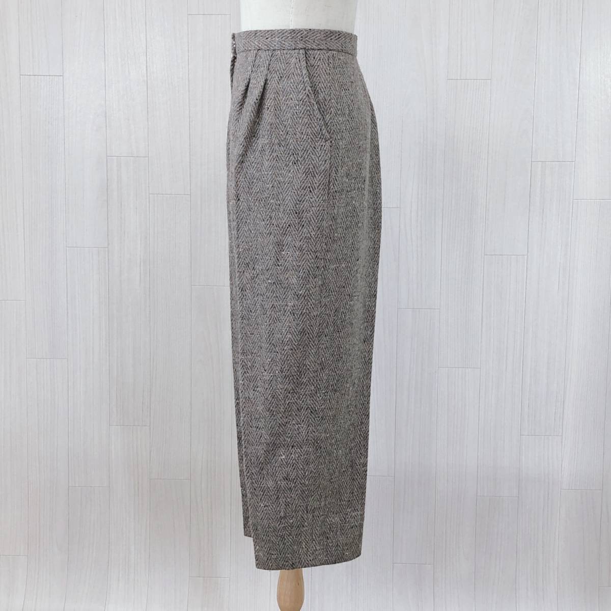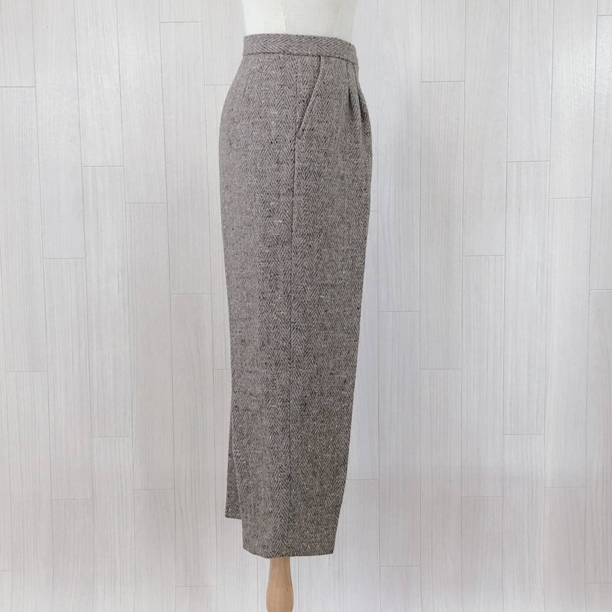 YAS0485 レディース ボトムス カジュアルパンツ ロング丈 ブラウン 茶 ベージュ ツイード柄 シック 落ち着いた 昭和レトロ 防寒 秋冬
