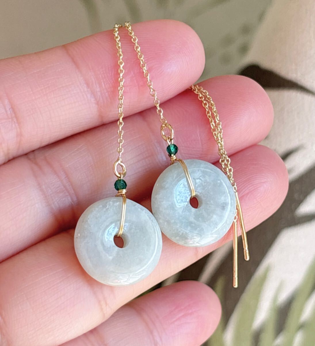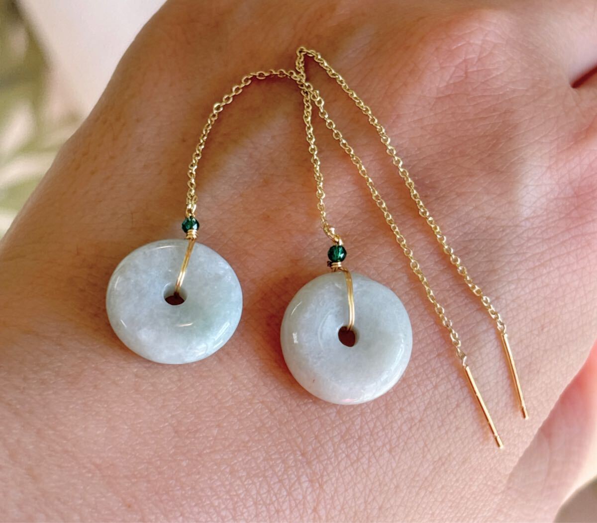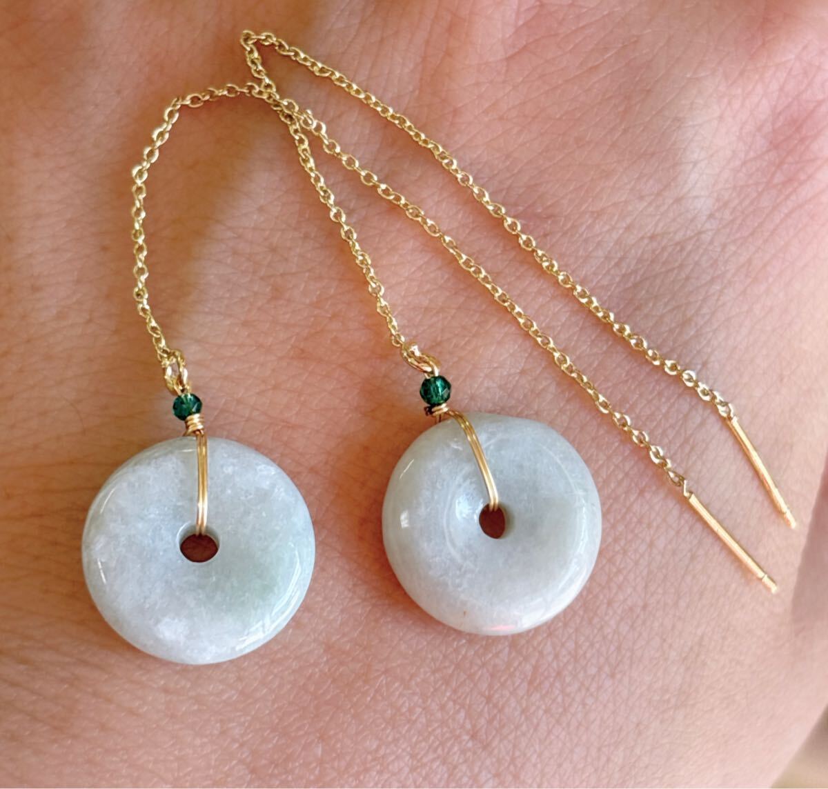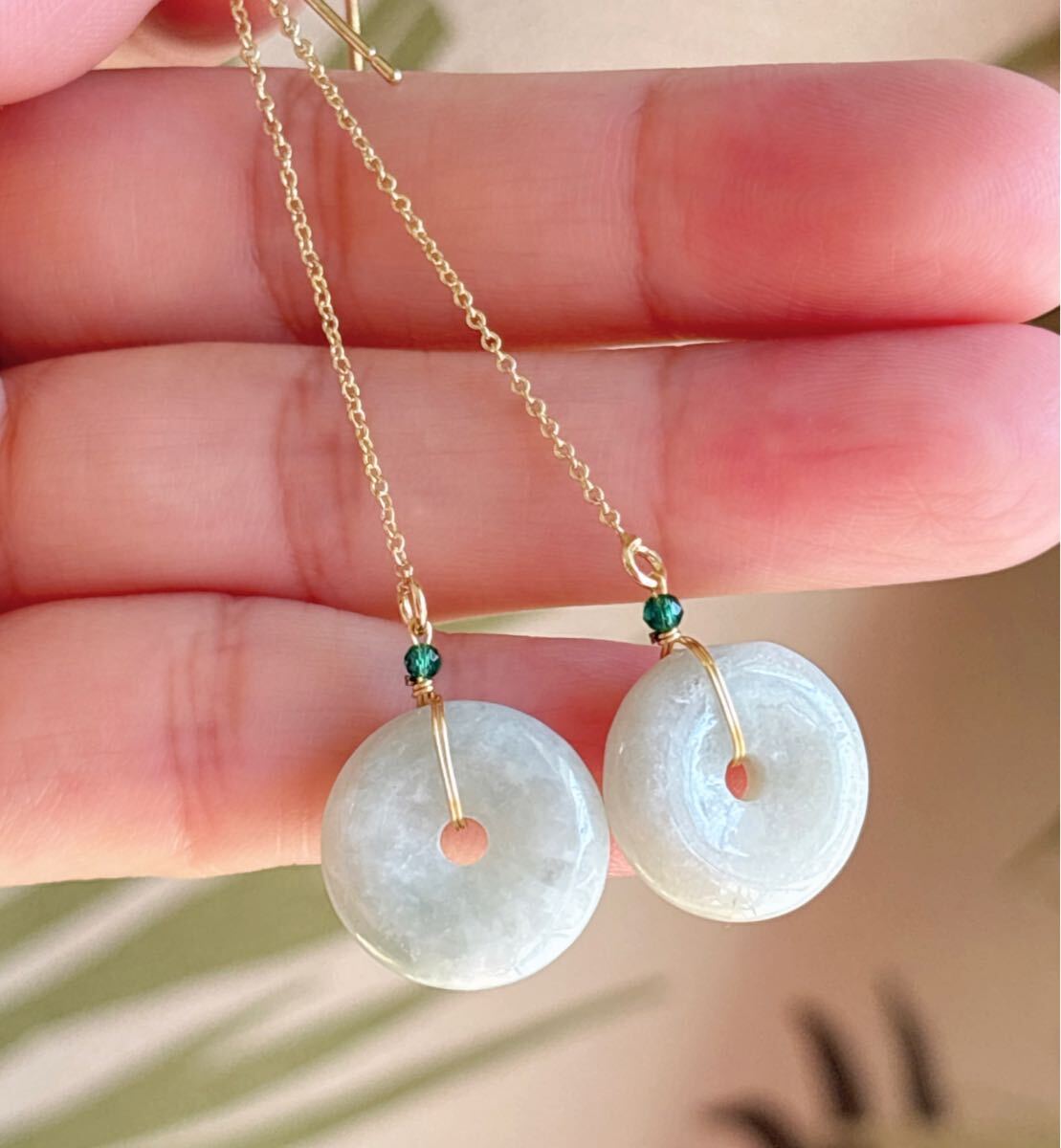 天然ミャンマーの本翡翠(A)ピンアンコウのピアスサイズ:約直径15mm*厚さ4mm;