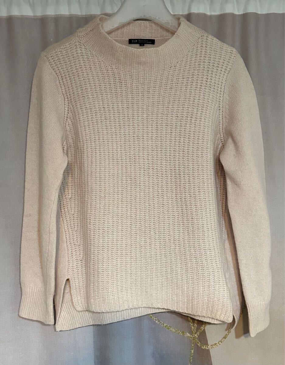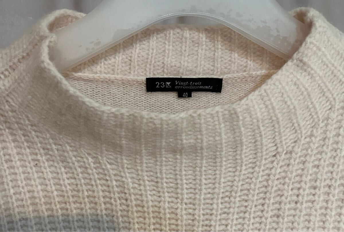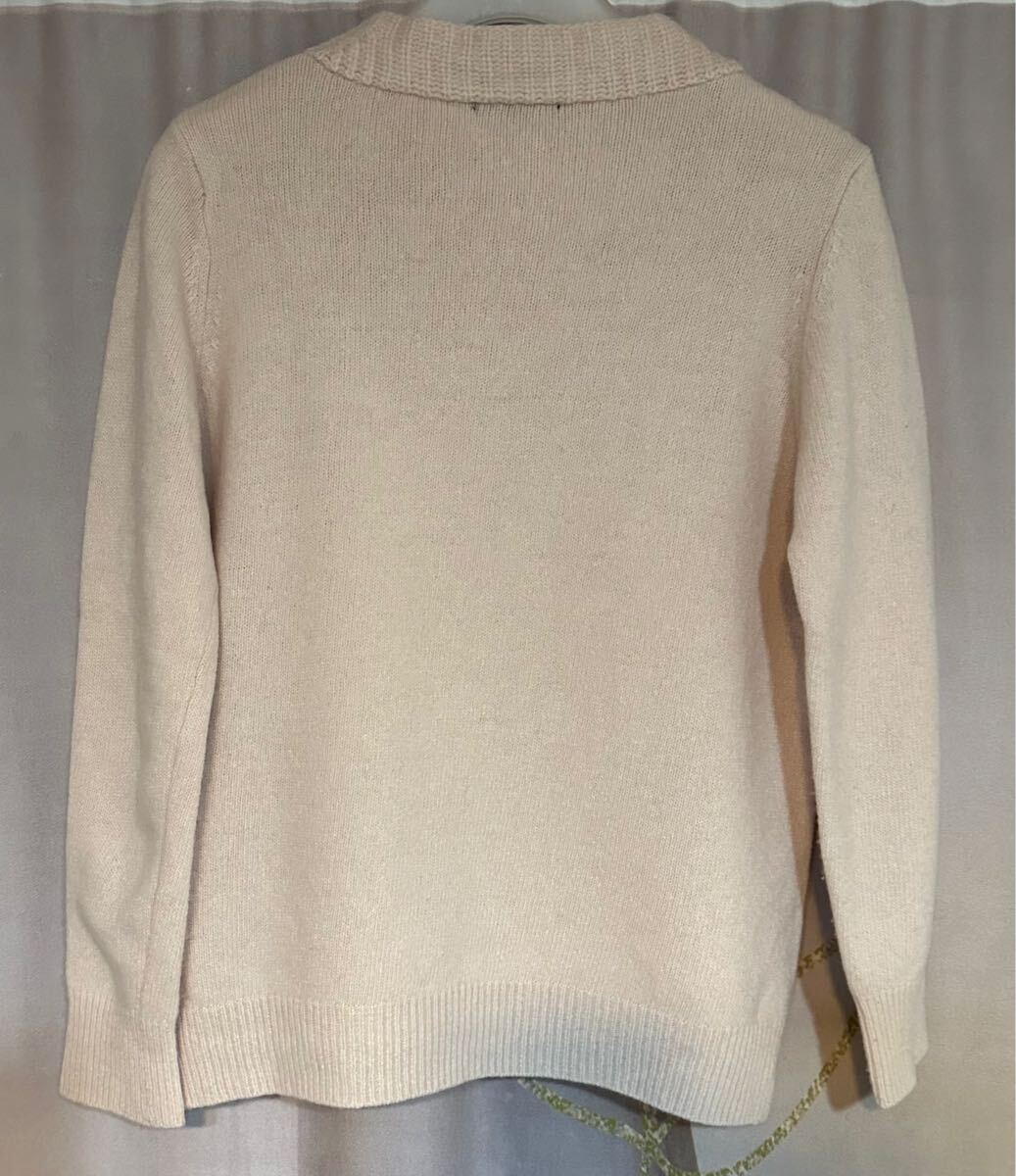・編み込みのデザインがお洒落な羊毛にカシミヤを5%ブレンドした手触りの良いニットとなります。